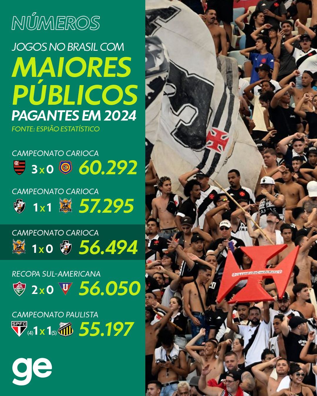 Final de semana com dois jogos no Top5 de maiores públicos em 2024! 👏