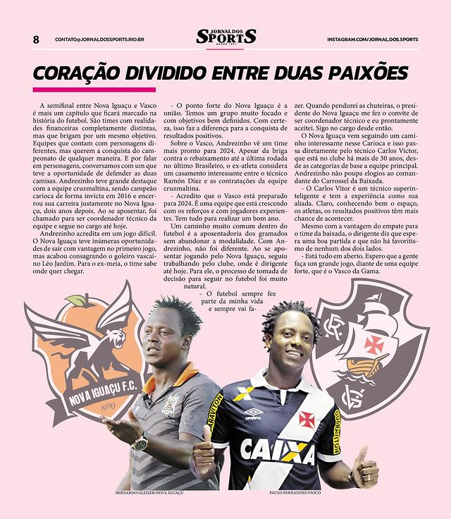 Ex-jogador do Vasco e hoje dirigente do Nova Iguaçu, Andrezinho projeta o clássico deste domingo
