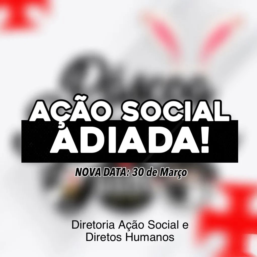 Atenção Vascaínos! Por motivos de força maior, nossa ação social que iria ocorrer amanhã, 23 de março, foi ADIADA para o próximo sábado, 30 de março às 15:30h.