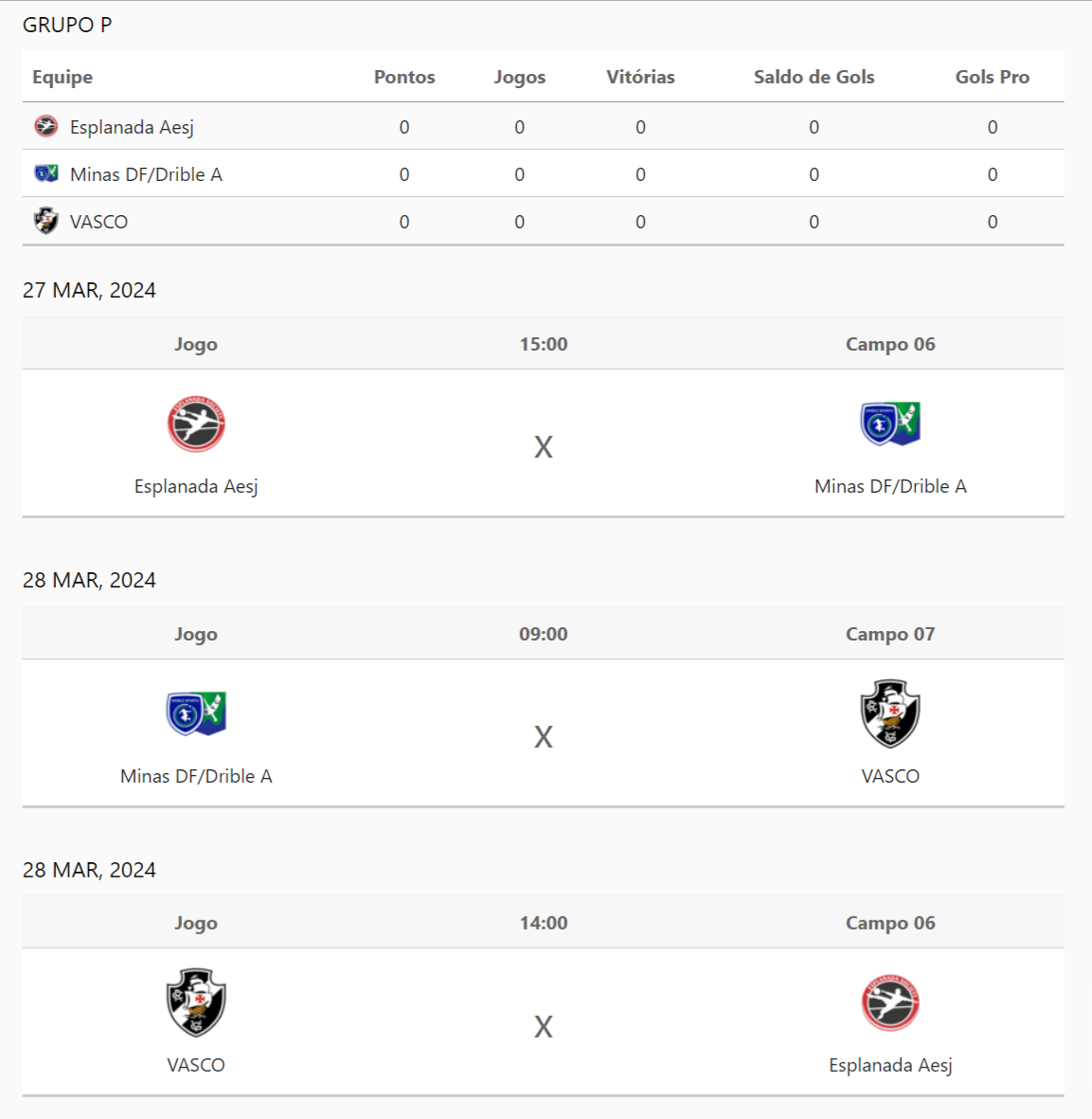 Sub-11: Confira a tabela do Vasco na 2ª fase classificatória da Go Cup