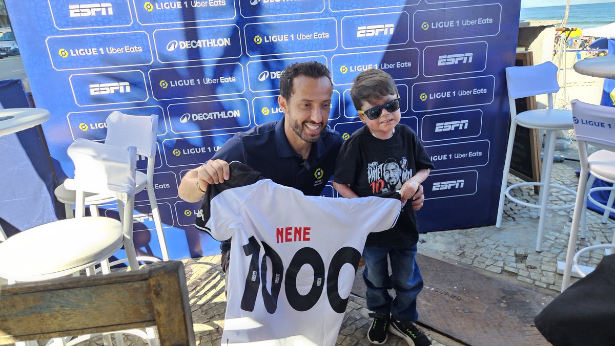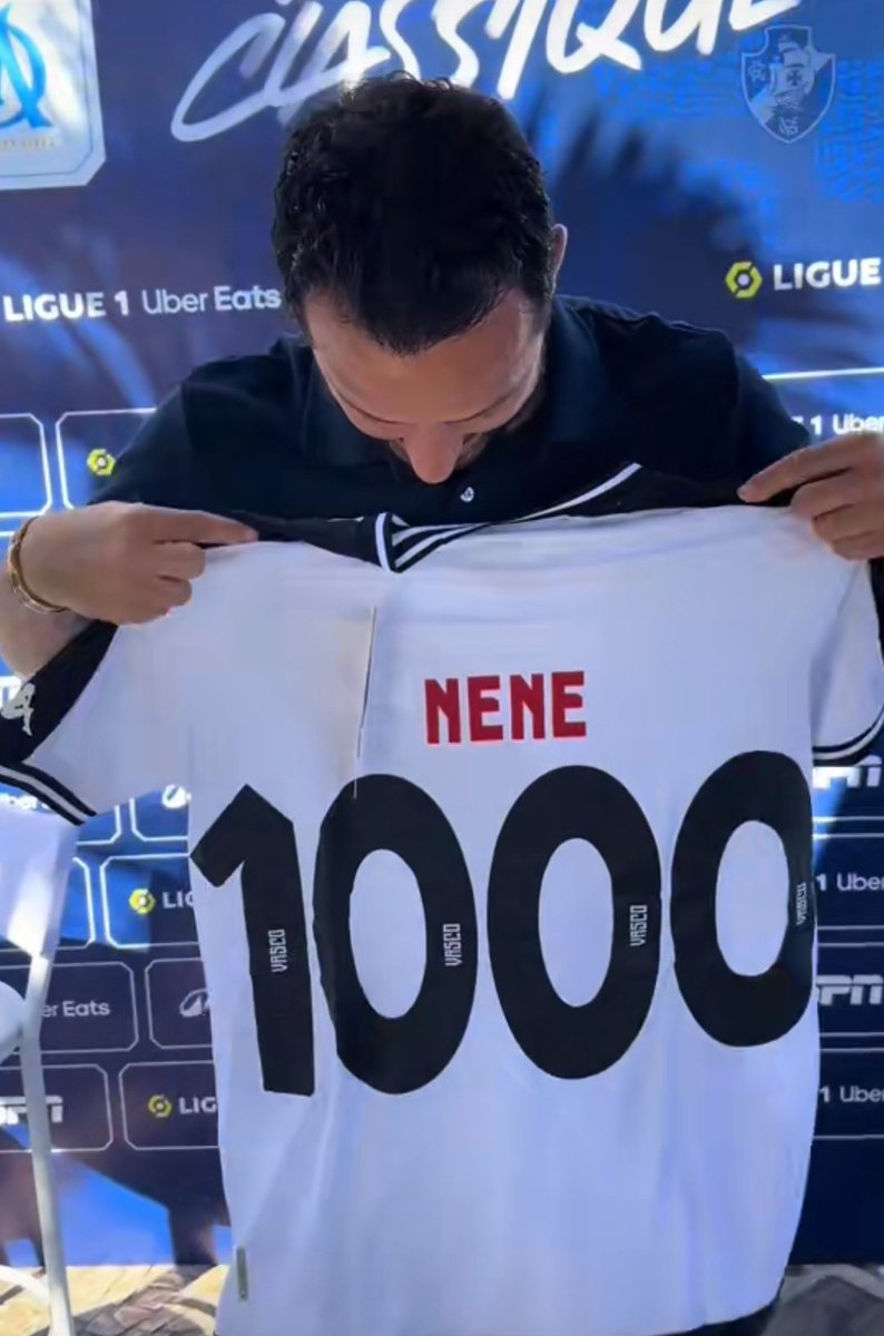 O Vasco também aproveitou a vinda do Nenê ao Rio, para evento da @Ligue1UberEats, para homenagear o meia, que, ontem, pelo Juventude, chegou aos 1000 jogos na carreira. Pelo Vasco, foram 204 partidas: 199 jogos oficiais e 5 amistosos. @trivela