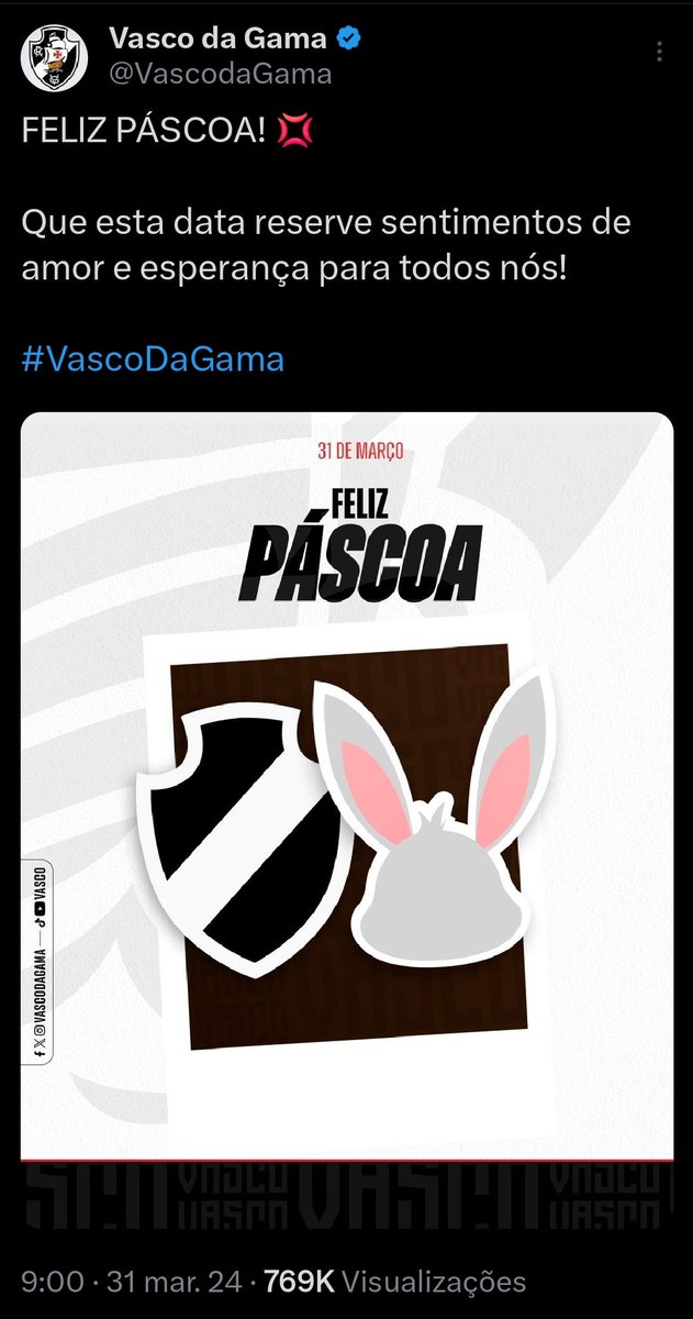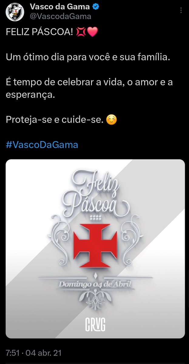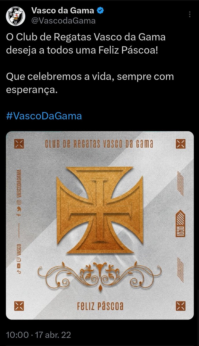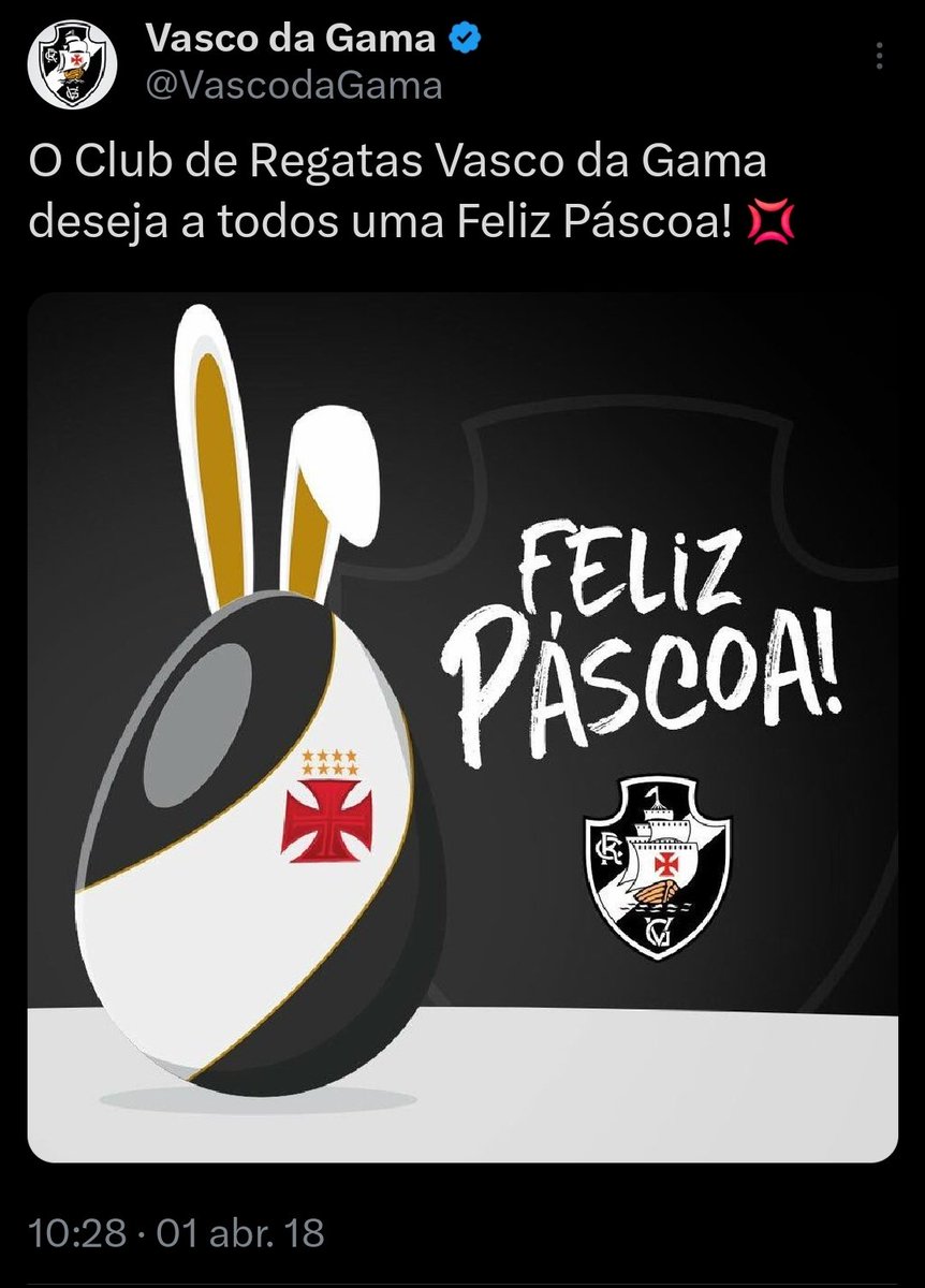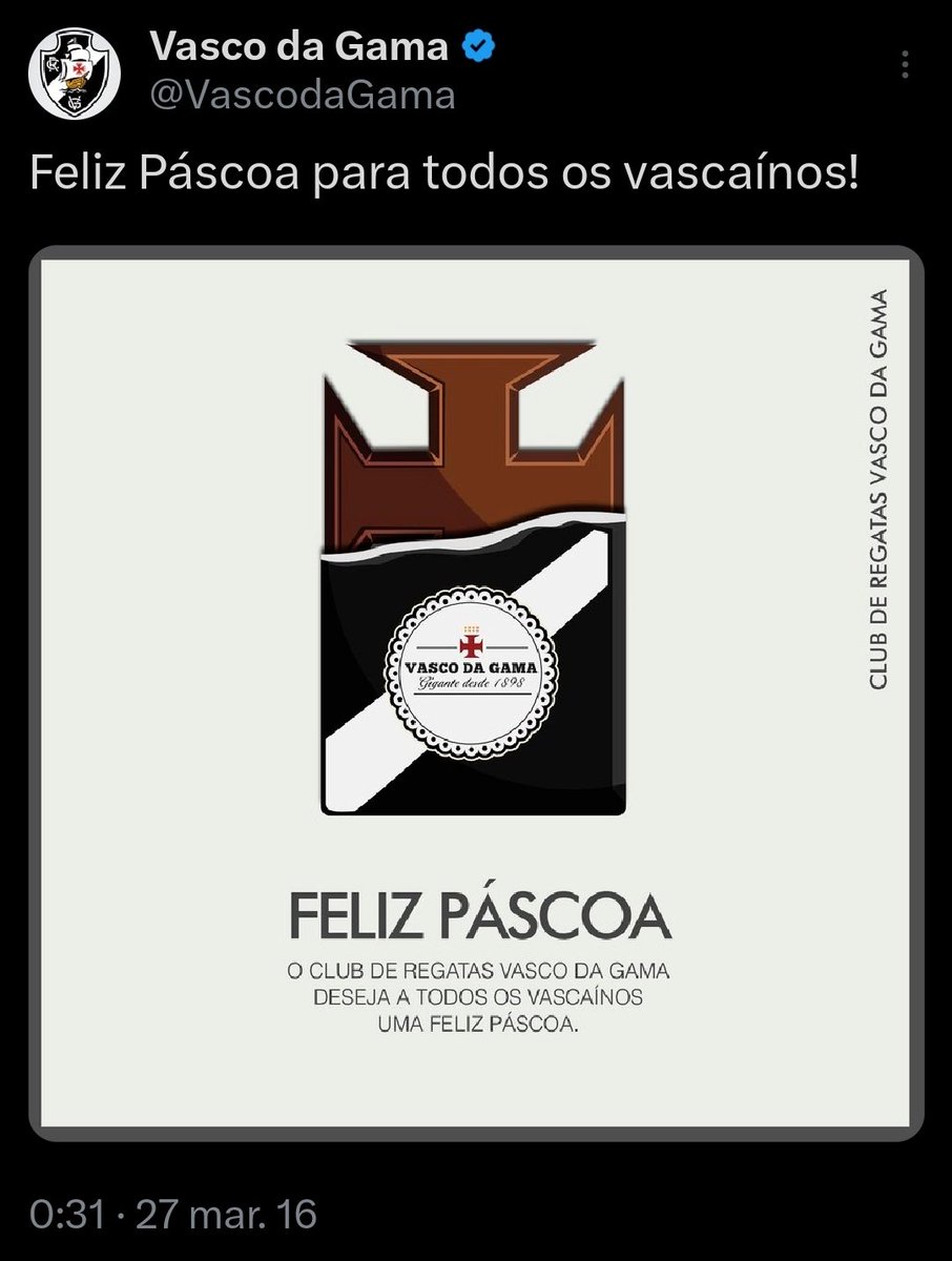 Relembre as postagens de 'Feliz Páscoa' do Vasco nos últimos anos