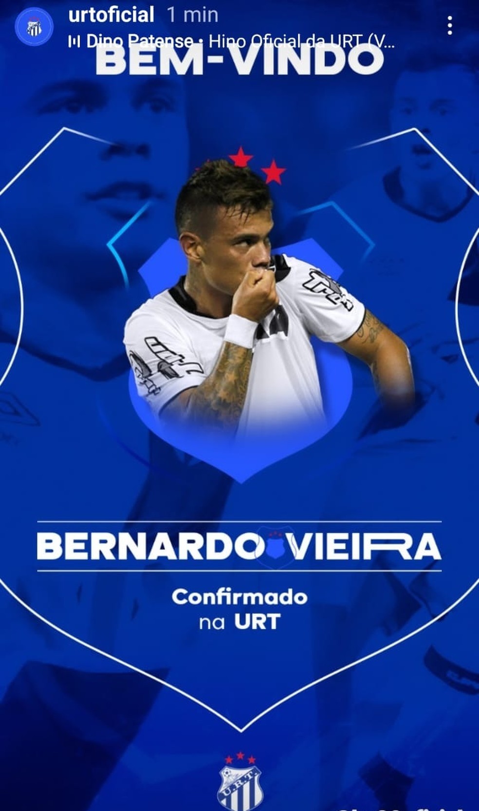 A URT anunciou nesta segunda a contratação do meia Bernardo, de 33 anos. Revelado pelo Cruzeiro e com passagens por Vasco, Santos e Palmeiras, o jogador, que defendeu o Brasiliense nos primeiros meses do ano, é um dos reforços da equipe de Patos de Minas para a disputa do Módulo 2 do Mineiro.