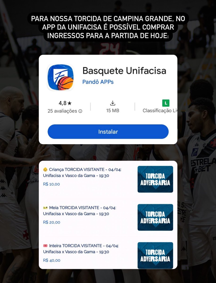 No app da Unifacisa, você encontra disponível os ingressos para a partida de hoje!