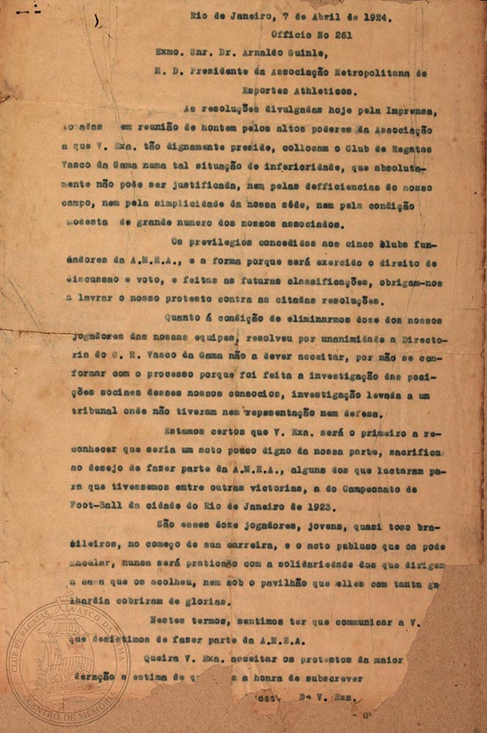 - É preciso tratar a história de formação e trajetória do Vasco dialogando com os principais processos culturais, políticos, econômicos e sociais vivenciados pela sociedade brasileira e carioca, zelando para que a história do clube sirva como inspiração para ações afirmativas na contemporaneidade, de modo a ratificar os valores da agremiação vascaína: respeito, igualdade e inclusão - afirmou Walmer Peres, historiador do clube.