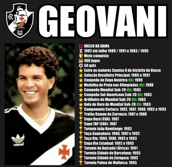 Hoje é aniversário do vascaíno Geovani Faria da Silva (60 anos), o ídolo Geovani. 🎂💢