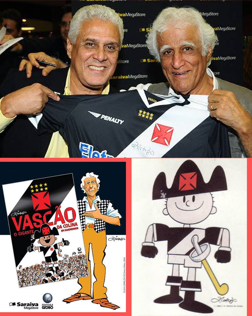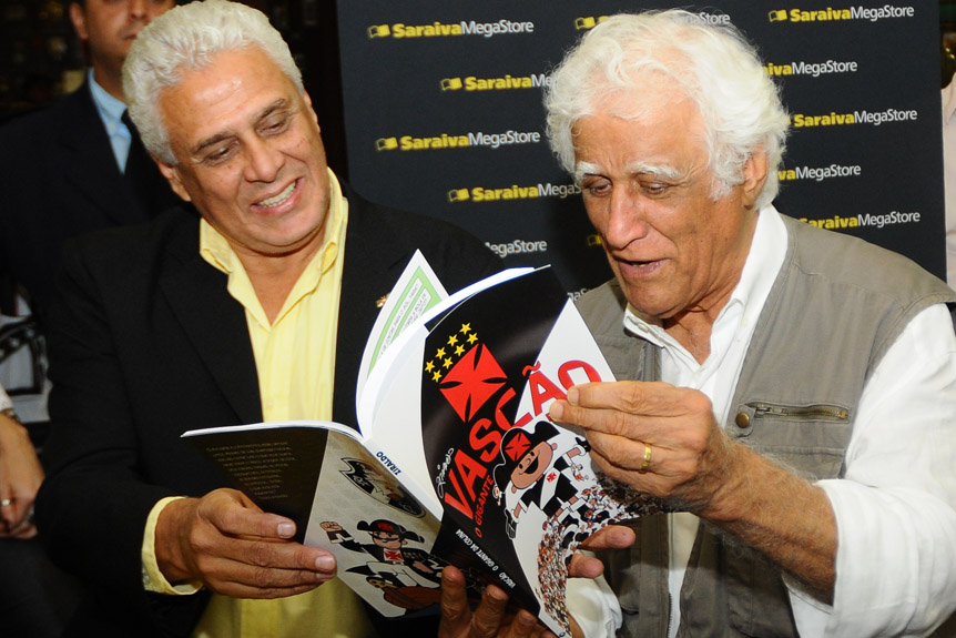 Roberto Dinamite, então presidente do Vasco, e o quadrinista Ziraldo marcaram presença na extinta Saraiva do shopping Rio Sul para lançar a HQ Cruzmaltina.