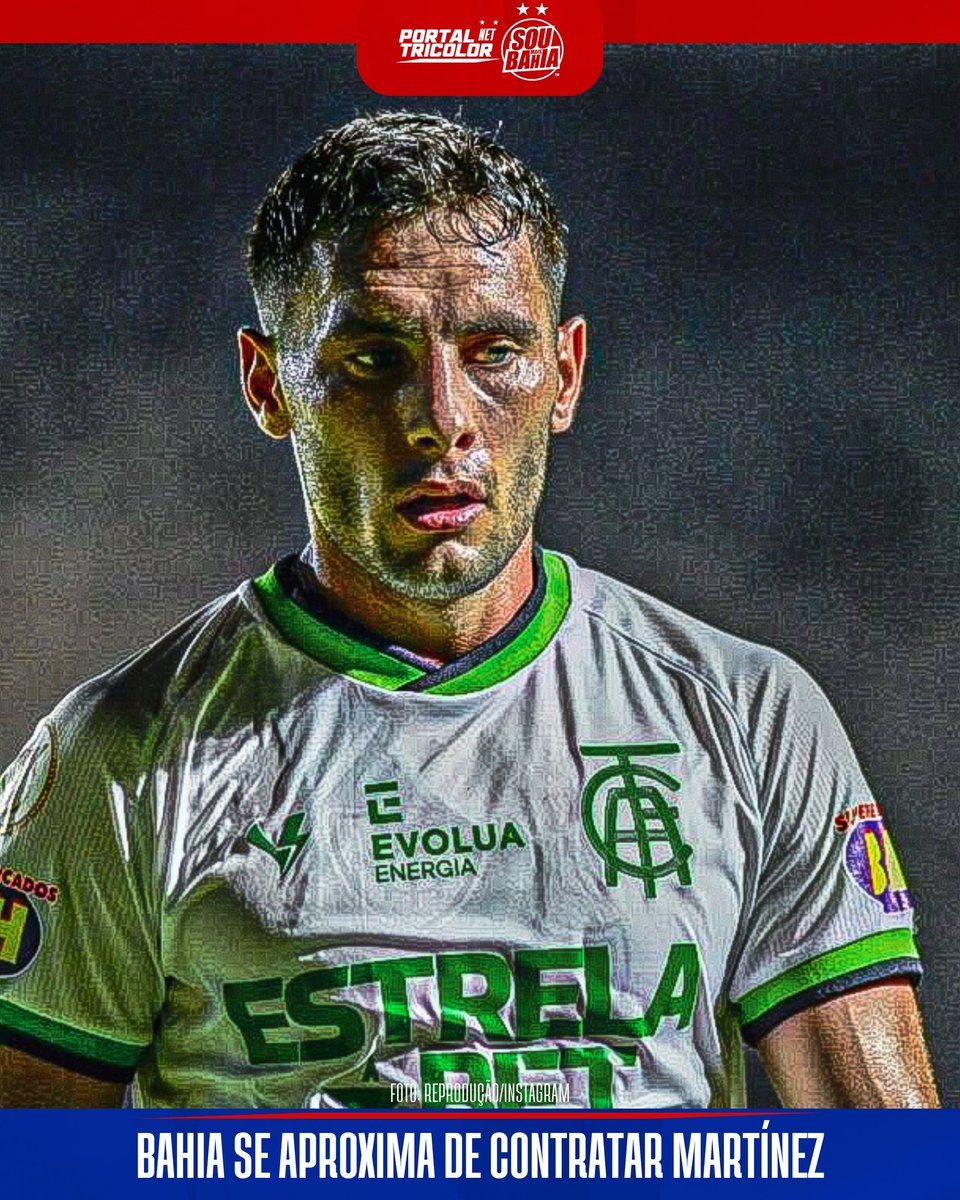 🚨 O Bahia tem negociações avançadas para fechar com o volante Martínez. O argentino quer sair em definitivo do América/MG, buscando a melhor adaptação da família. O jogador de 29 anos foi o líder em desarmes no último Campeonato Brasileiro.