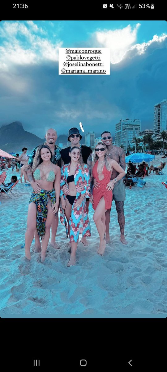 Maicon, Vegetti e ZĂ© Gabriel curtiram praia com suas esposas neste domingo de folga