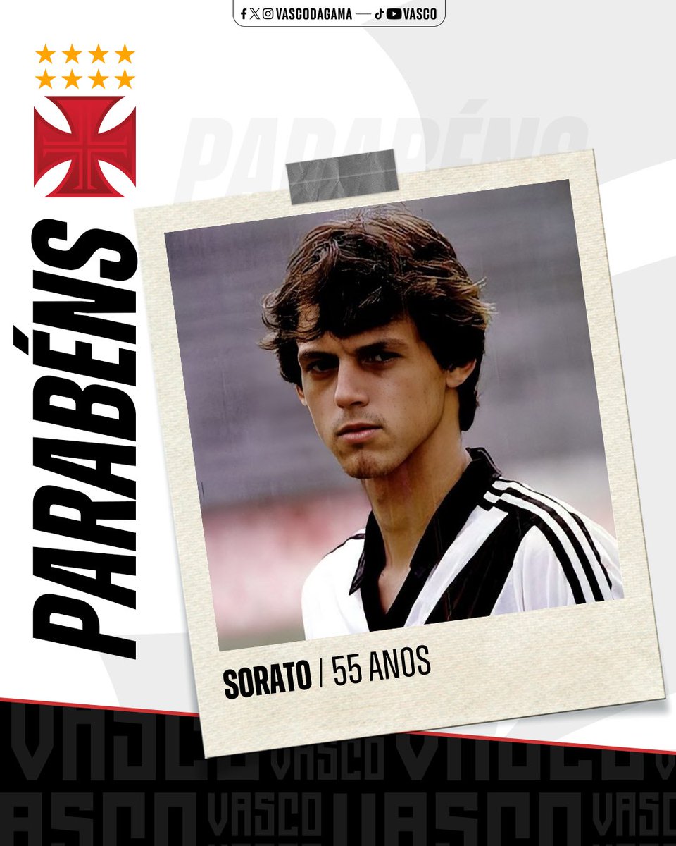 Hoje é aniversário do ídolo Sorato (55 anos), autor do gol que deu o Bicampeonato Brasileiro 89 do Vasco. 🎂💢