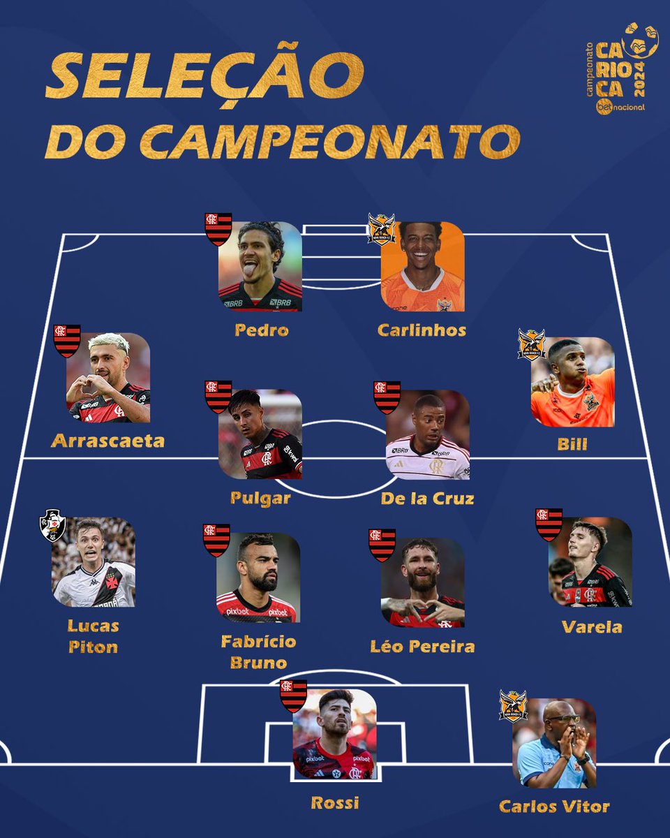 A SELEÇÃO TÁ FORMADA! 🤩⚽️ Se liga nos 11 nomes, além do comandante, que formam a Seleção do #CariocaBetNacional 2024! 👏🏆