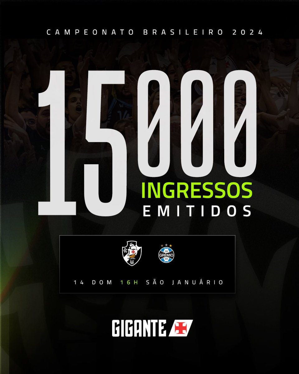 Já foram emitidos 15 mil ingressos para Vasco x Grêmio