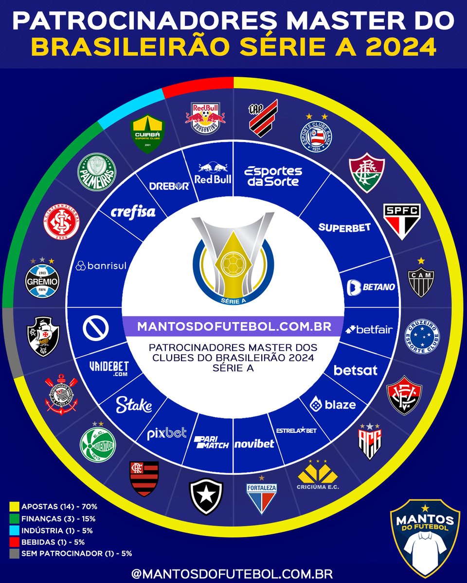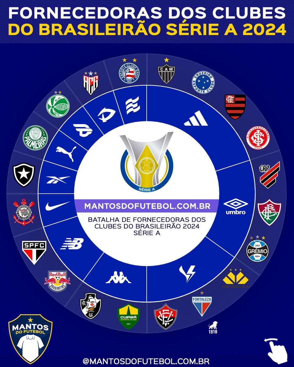 🇧🇷 Adidas na liderança e presença massiva de casas de apostas. Hora de conferirmos a batalha de fornecedoras e patrocinadores master dos times da Série A do @Brasileirao, que começa neste fim de semana!
