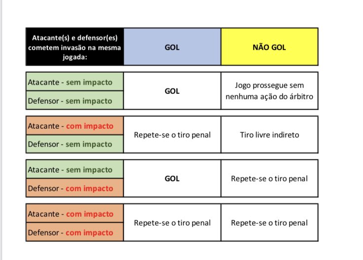 - Invasão de área em cobrança de pênalti conforme gráfico:
