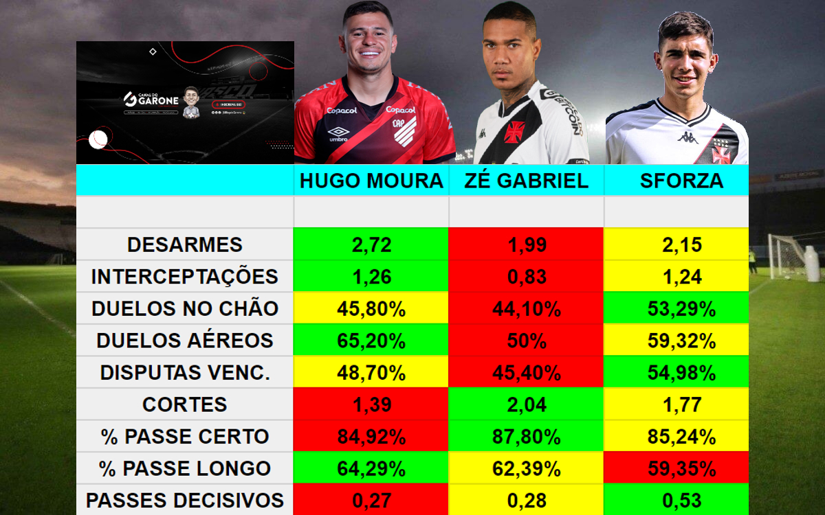 Tá aí o comparativo dos números de Hugo Moura, Zé Gabriel e Sforza.