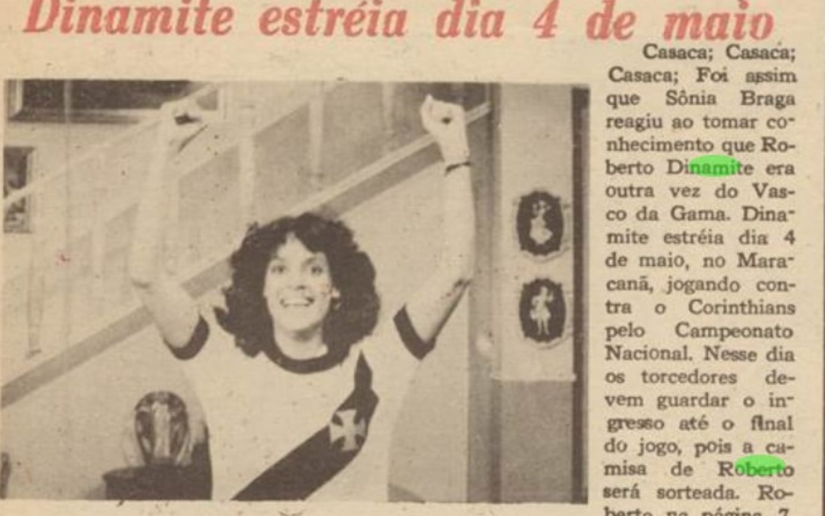 O primeiro jogo no Maracanã teve até uma chamada com uma foto da atriz Sônia Braga sobre a reação dela com o retorno do jogador: "Casaca, casaca, casaca. Foi assim que Sônia Braga reagiu ao tomar conhecimento que Roberto Dinamite era outra vez do Vasco da Gama".
