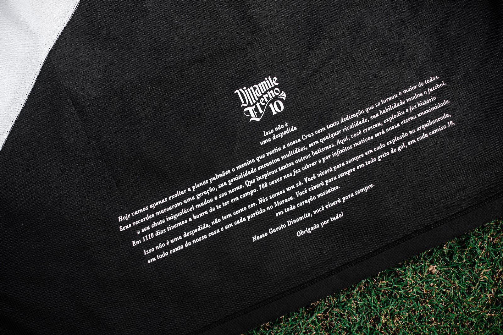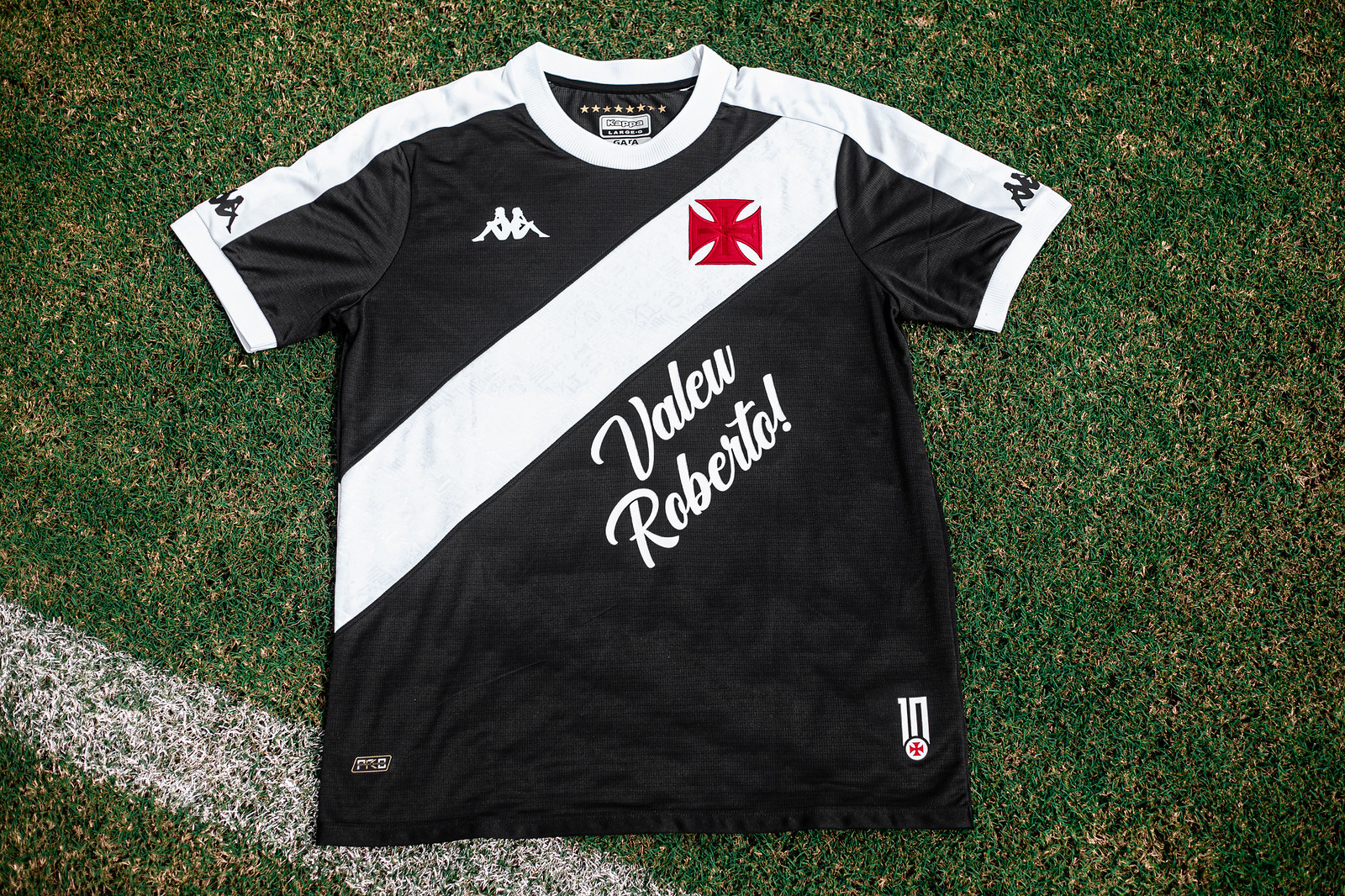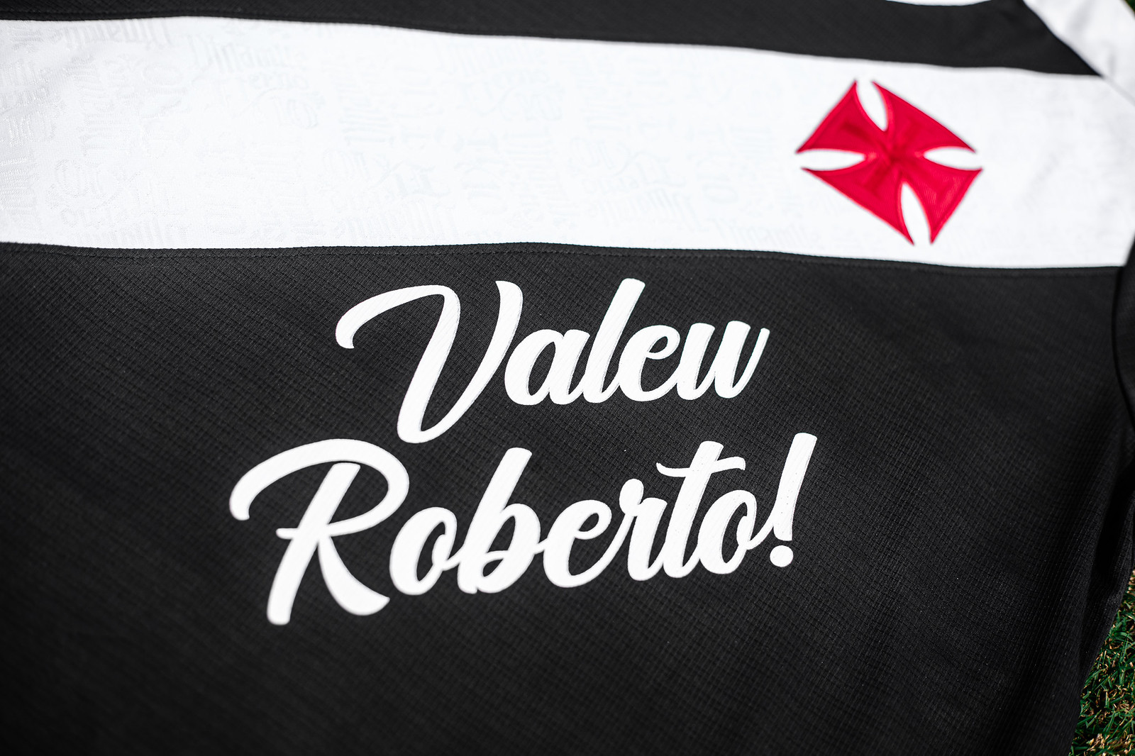 A frase "Valeu, Roberto" estará estampada na parte frontal da nova camisa vascaína, em referência ao modelo utilizado pelo Gigante da Colina no jogo que marcou a despedida do lendário camisa 10, diante do La Coruña (ESP), em 1993.