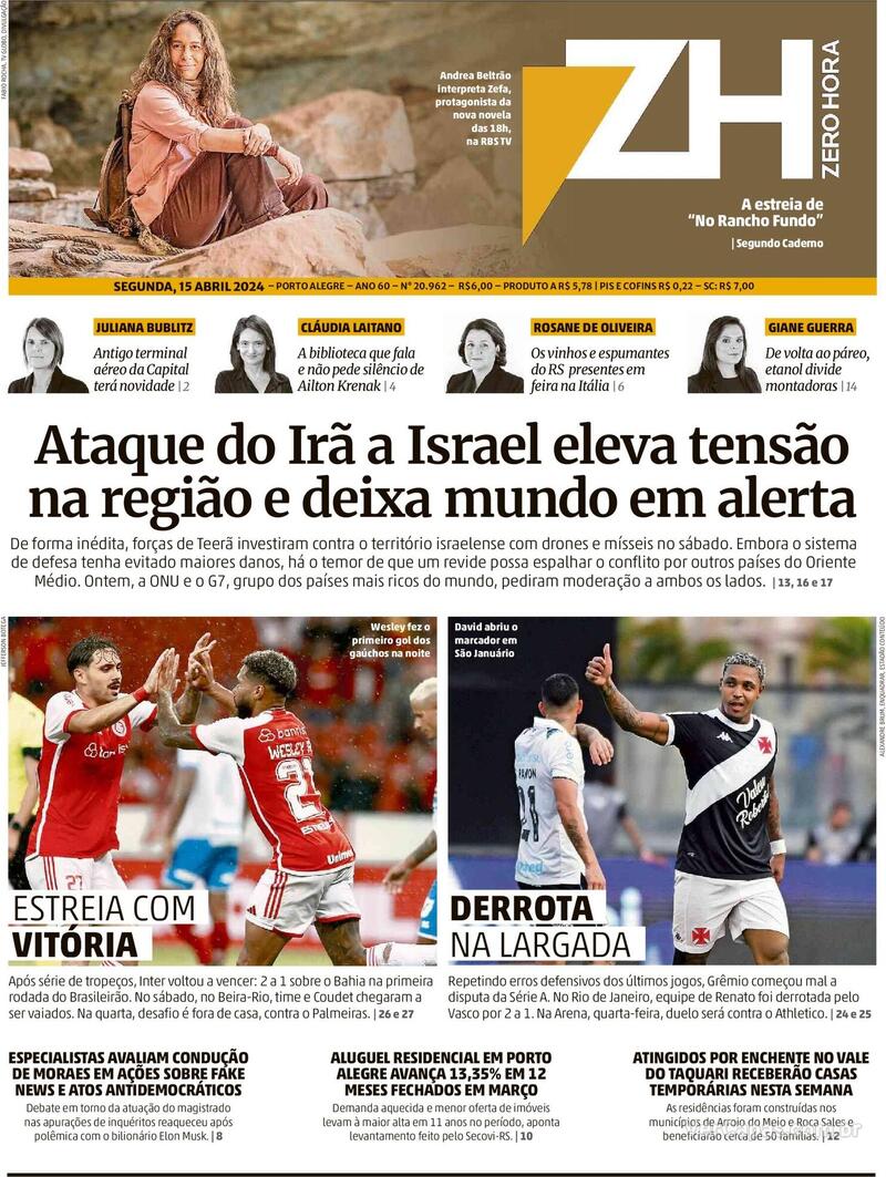 Em sua estreia no Campeonato Brasileiro, o Vasco derrotou o Grêmio por 2 a 1 em São Januário, gols de David e Mateus Carvalho, em dia marcado por homenagens a Roberto Dinamite, que teria completado 70 anos no último sábado. Veja as capas dos jornais.