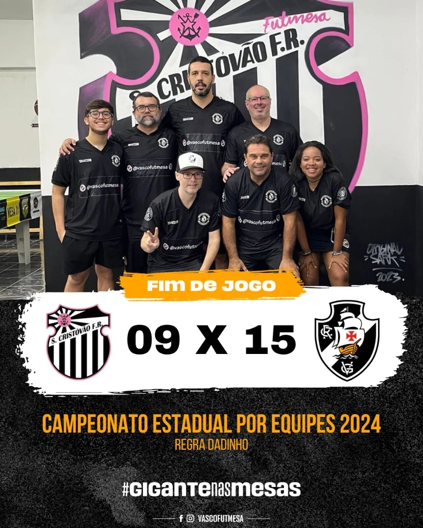 Neste domingo, dia 14/4, a equipe vascaína venceu a sua terceira partida no Campeonato Estadual por equipes. Fora de casa, venceu o São Cristóvão por 15 a 9, com parciais de:
