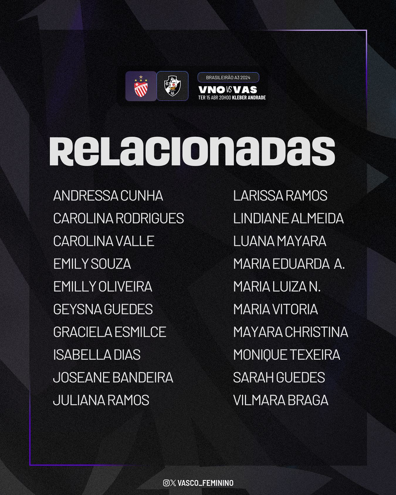 Fonte: Instagram oficial Vasco Feminino
