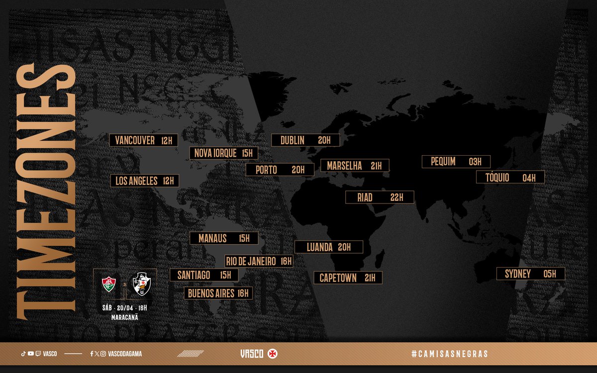 Vasco informa horário do jogo contra o Fluminense em várias partes do mundo