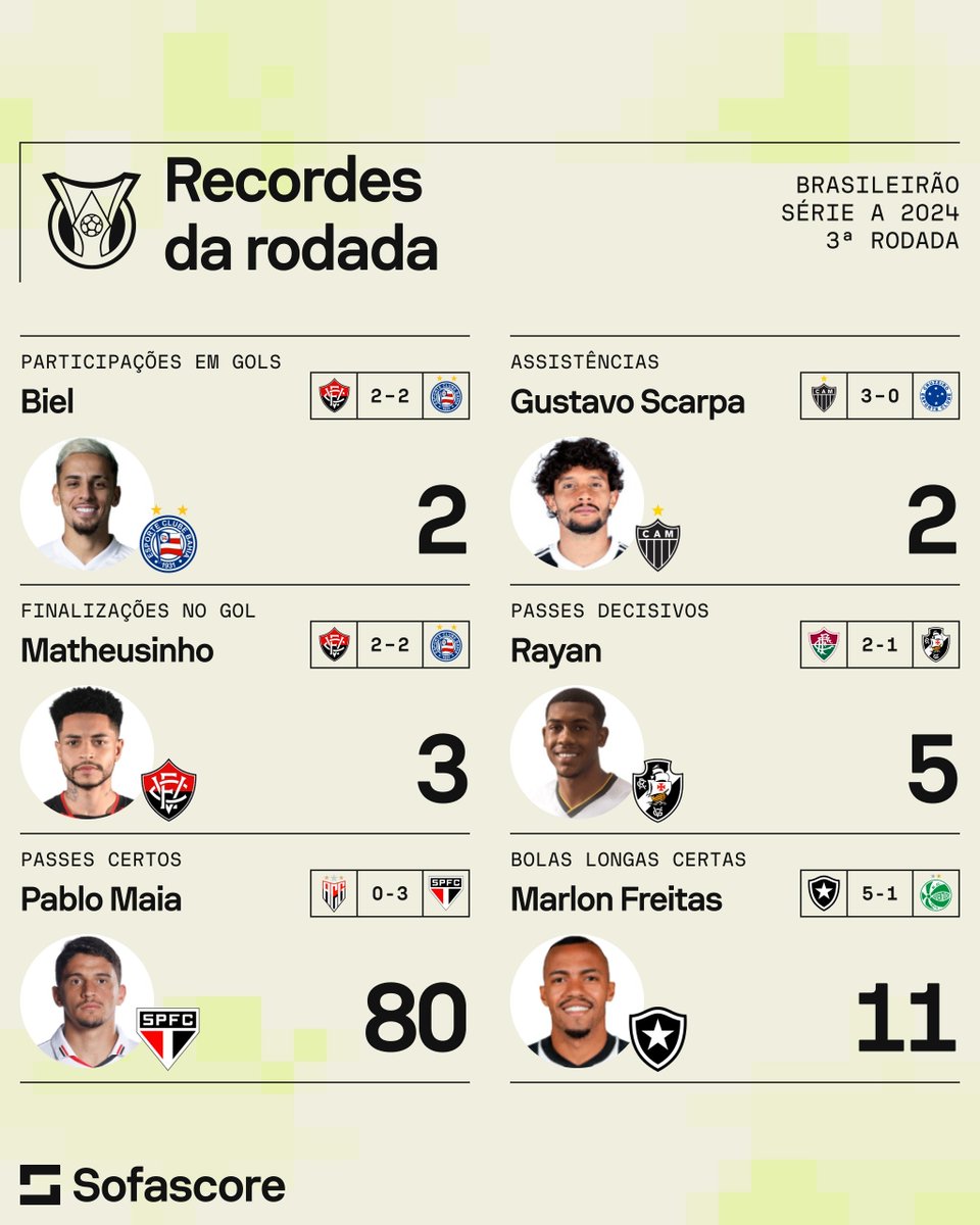 Rayan foi o líder em passes decisivos na 3ª rodada do Brasileiro