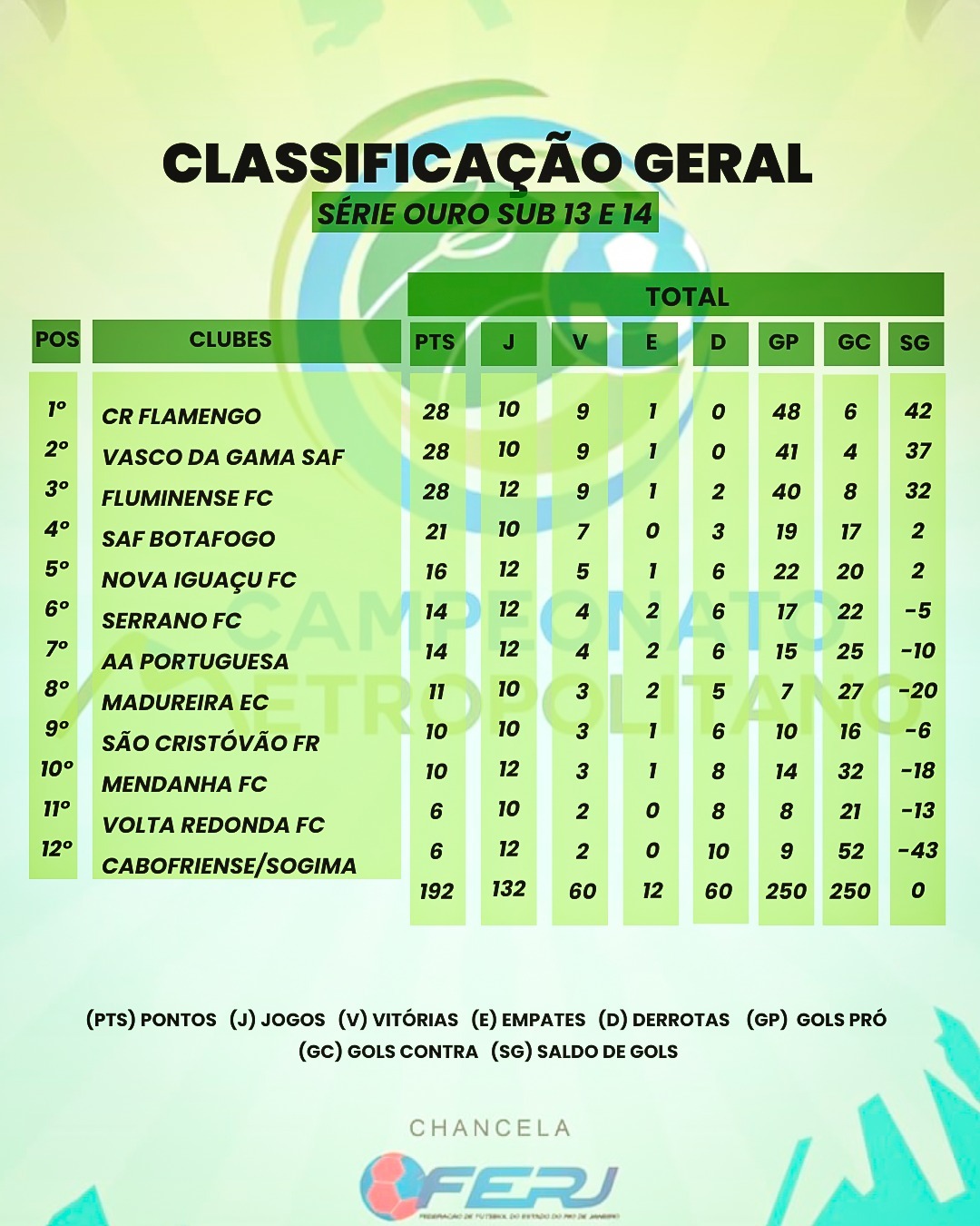 Vasco está em 2º lugar na classificação conjunta do Sub-13 e do Sub-14 da Taça Guanabara