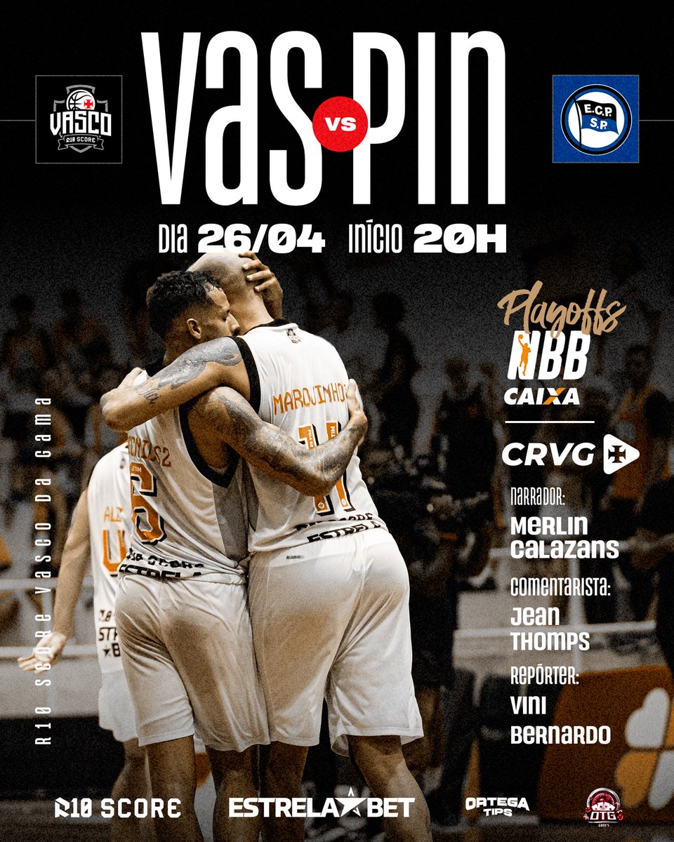 Basquete: Vasco faz o 2º jogo das oitavas do NBB contra o Pinheiros nesta 6ª às 20h em São Januário com CRVG TV+