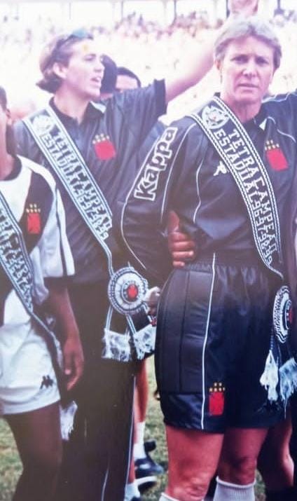 A goleira defendeu o Gigante da Colina, seu time de coração, entre os anos 90 e 2000. Foi campeã brasileira e conquistou o pentacampeonato carioca pelo clube. Meg se aposentou aos 44 anos, defendendo o Cruzmaltino. Brilhante! 🤩