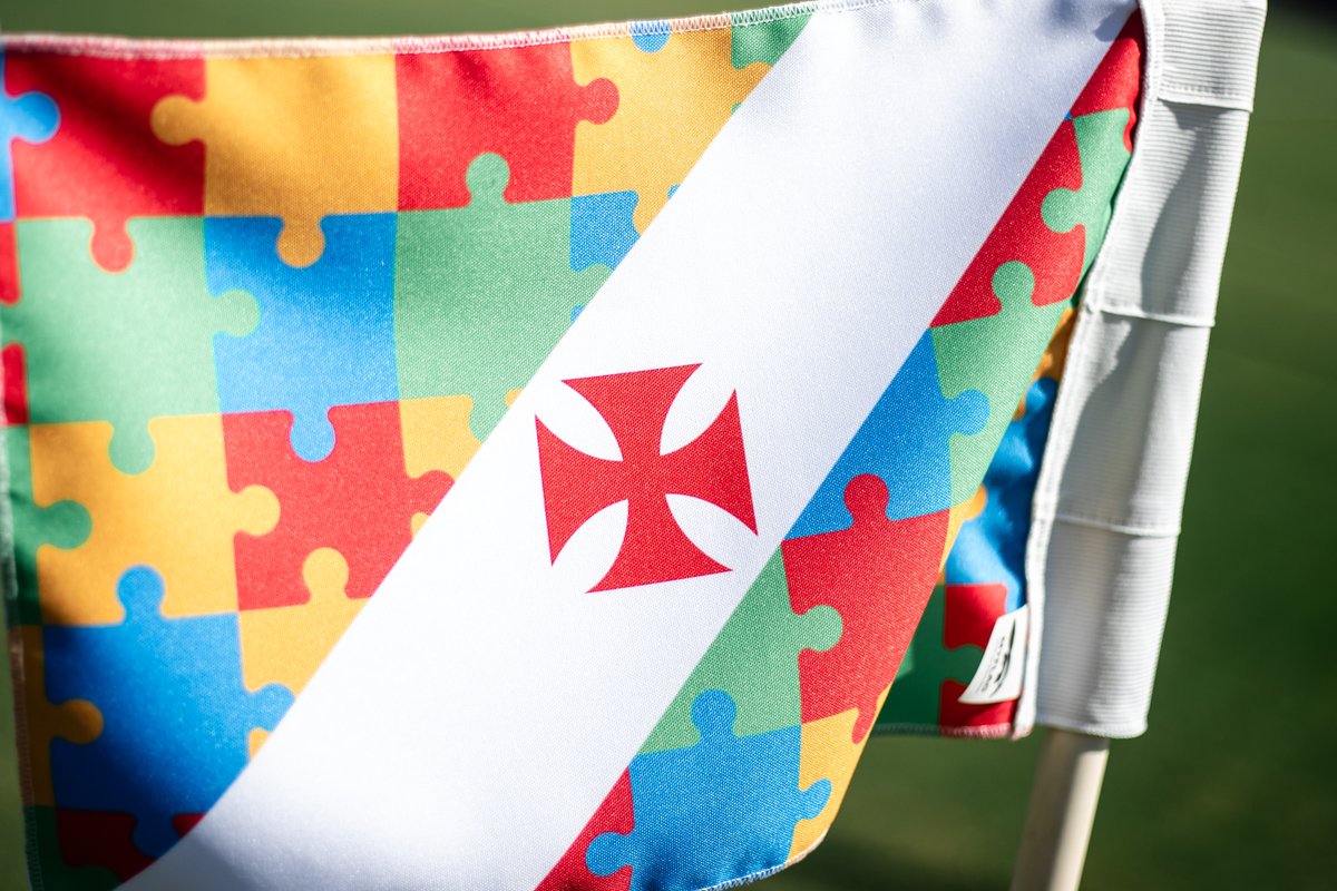O patch contém o logotipo da neurodiversidade, que celebra a expressão dentro do espectro e foi criado por autistas. Enquanto as bandeirinhas de escanteio também levam a temática.