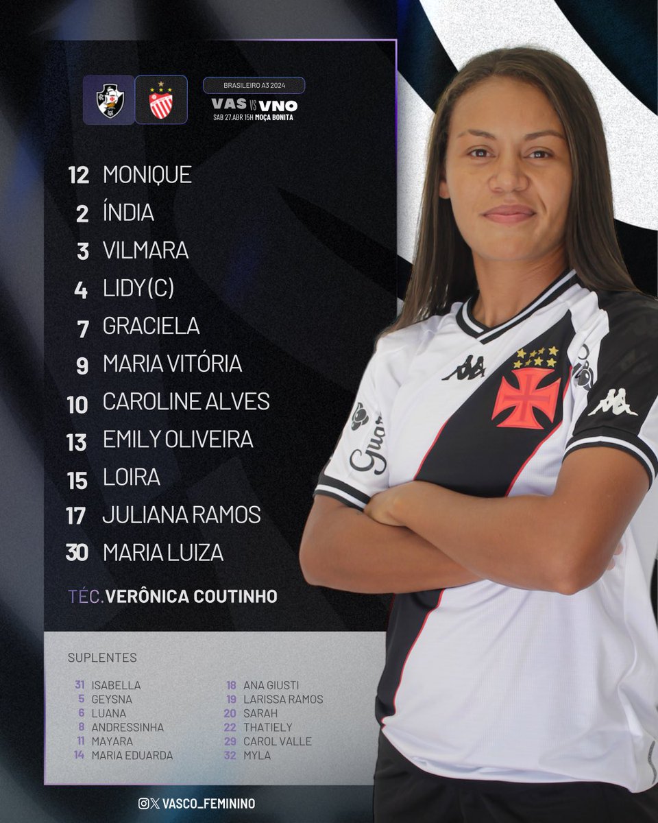 Nosso time está escalado para o jogo de volta da primeira fase do Brasileiro A3. A bola rola às 15h para Vasco e Vila Nova, no Estádio Moça Bonita. VAMOS! ✅📄💢