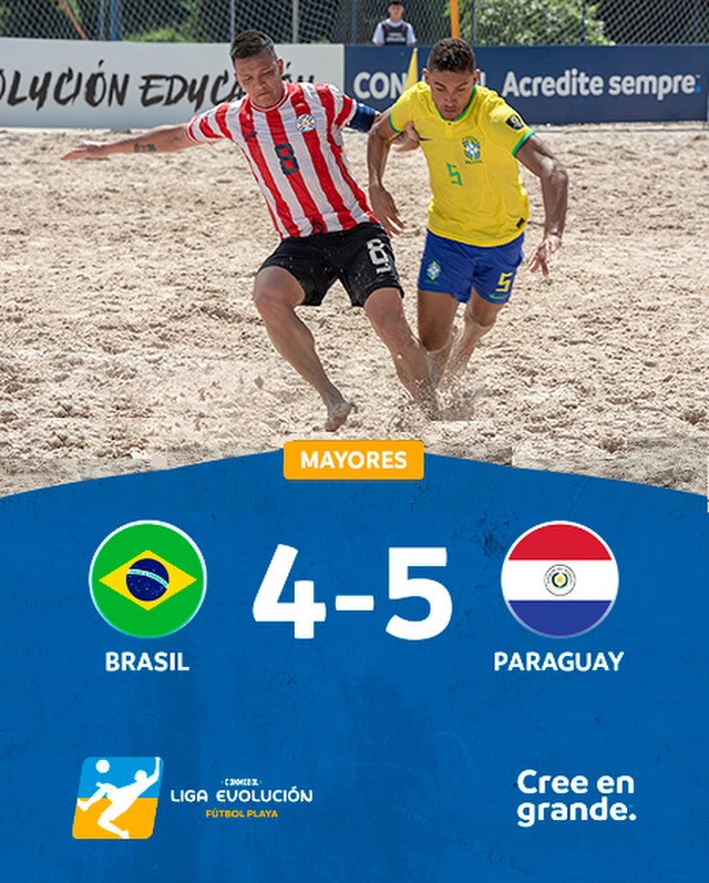O duelo entre as seleções principais de Brasil e Paraguai, neste domingo (28), na Arena Domingos Leal, em São Luís, no Maranhão, terminou com vitória paraguaia por 5 a 4, resultado que o deu o título da CONMEBOL Liga Evolución 2023 aos paraguaios.