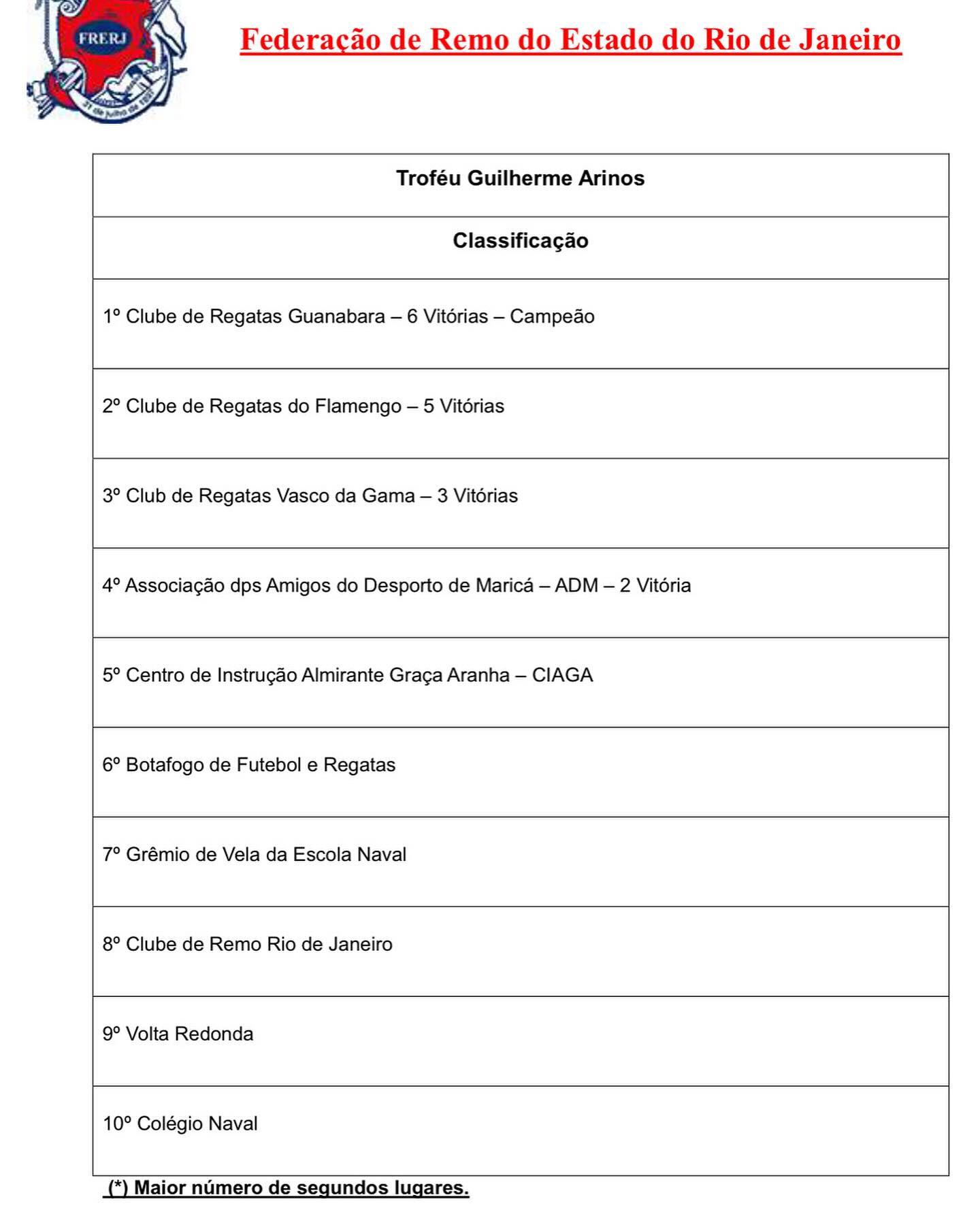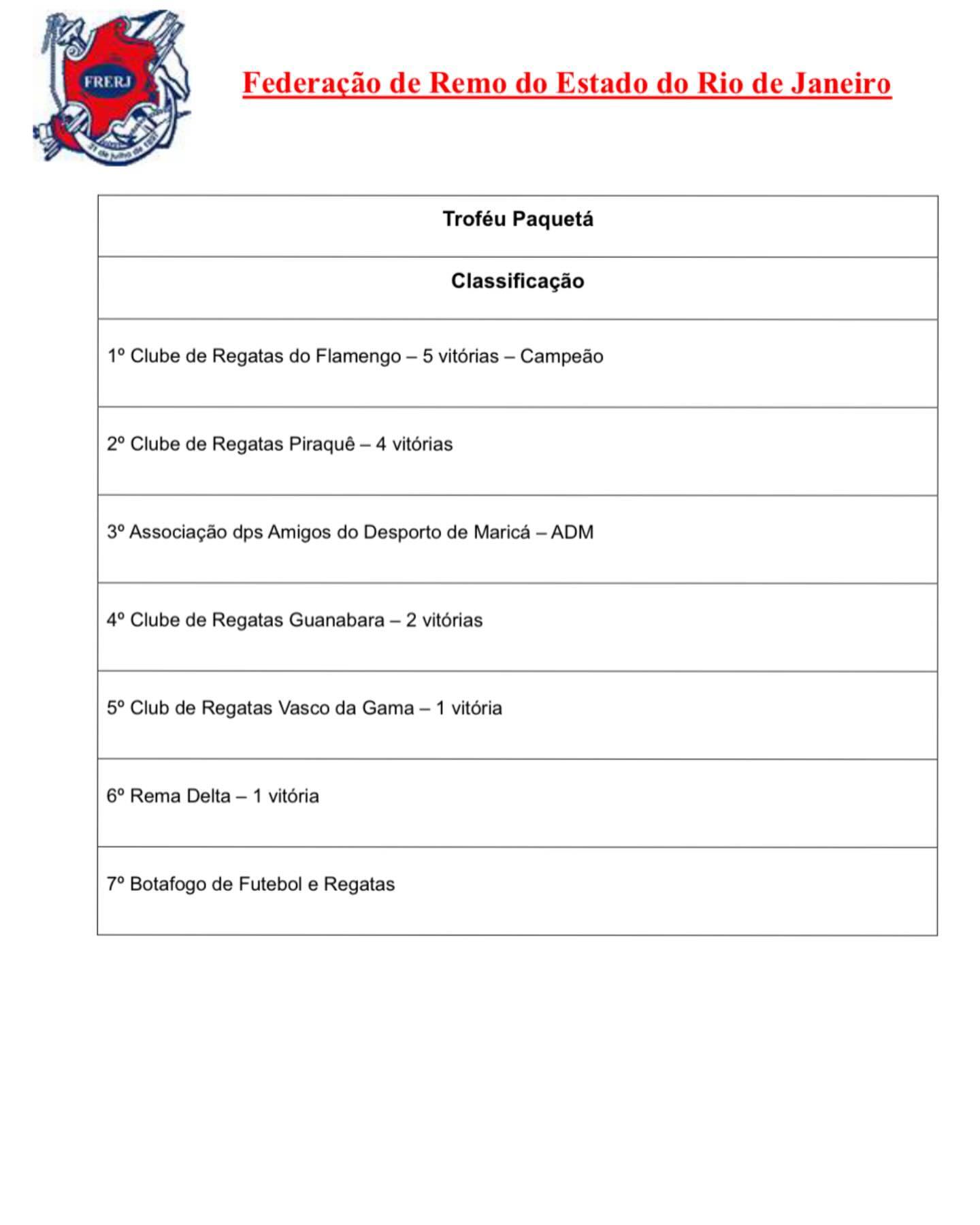 Resultado da 61a. Regata do Torneio Remo do Futuro (Troféu Guilherme Arinos e Troféu Paquetá). A próxima etapa está marcada para o dia 18 de agosto de 2024. Contamos com a participação de todos.