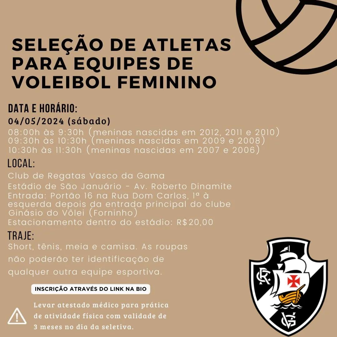 ⚠️ Seleção de atletas para equipes de voleibol feminino (Base)