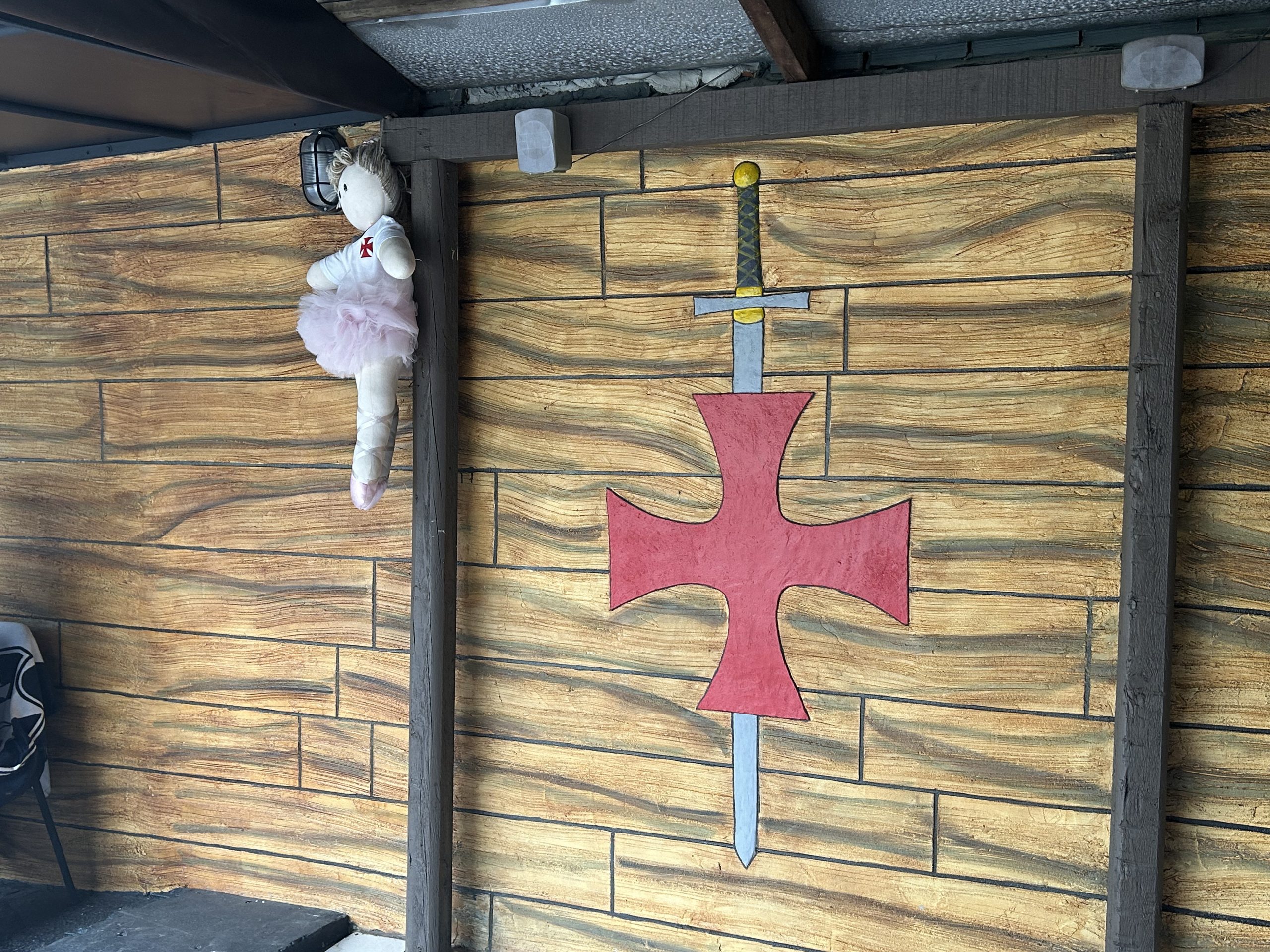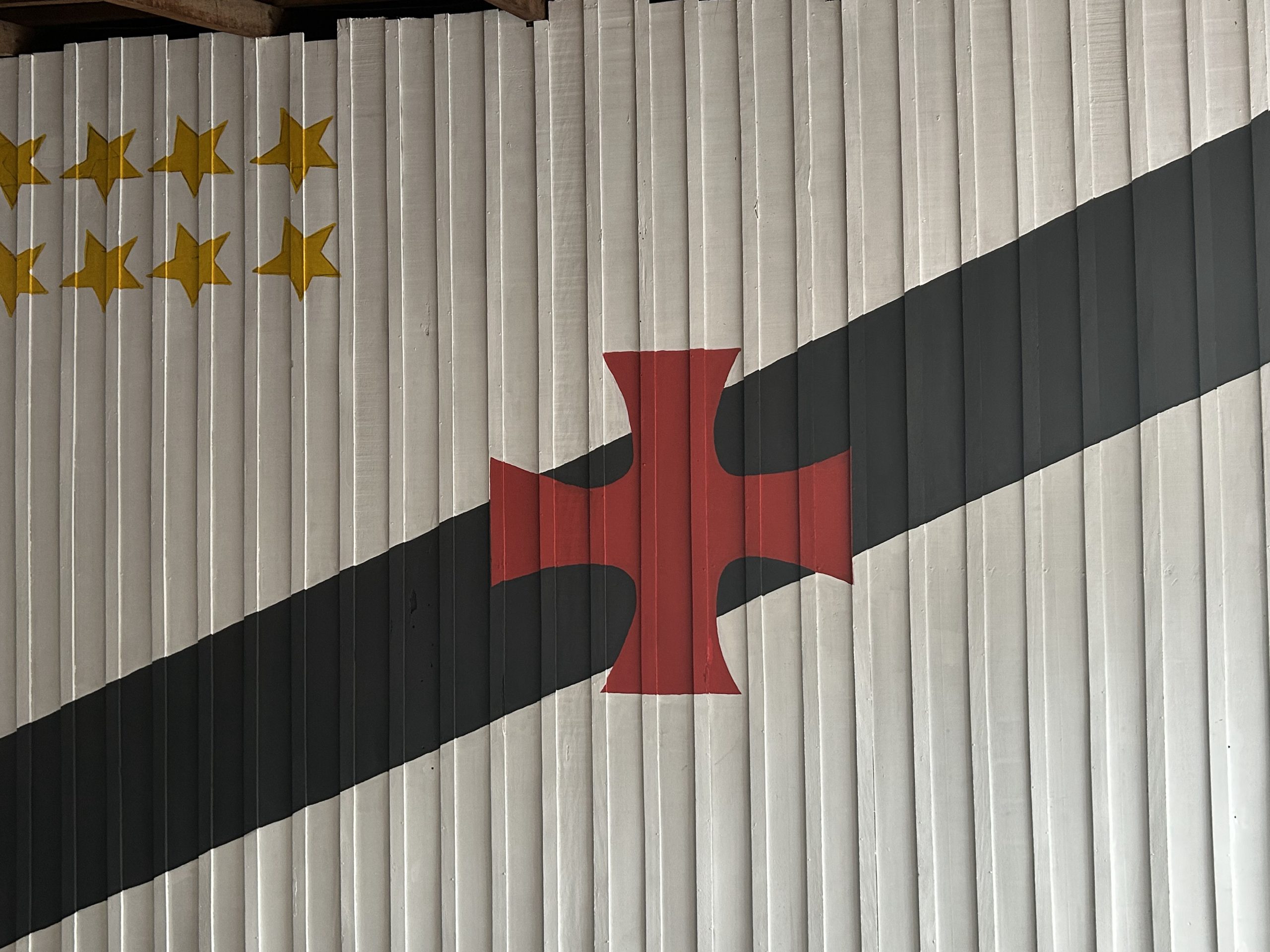 🌙 São escudos pintados, bandeiras espalhadas, cruzes de malta, além de um mosaico e até uma "lua" do clube.