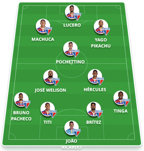 Provável time do Fortaleza: João Ricardo, Tinga, Britez, Titi, Bruno Pacheco; Zé Welison, Hércules, Pochettino; Pikachu, Machuca e Lucero.