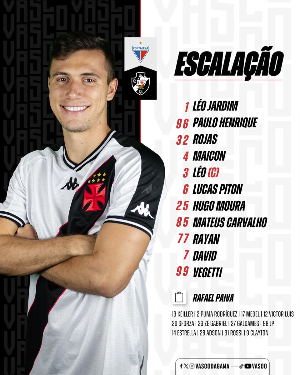 Vasco escalado para o jogo com o Fortaleza. Rojas, Maicon e Mateus Carvalho entram no time. Medel, Sforza e Payet saem em relação ao duelo com o Criciúma.