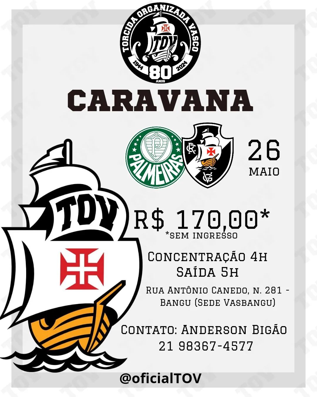 TOV, GDA e Mancha Negra organizam caravana para Palmeiras x Vasco, em 26/05, em Barueri