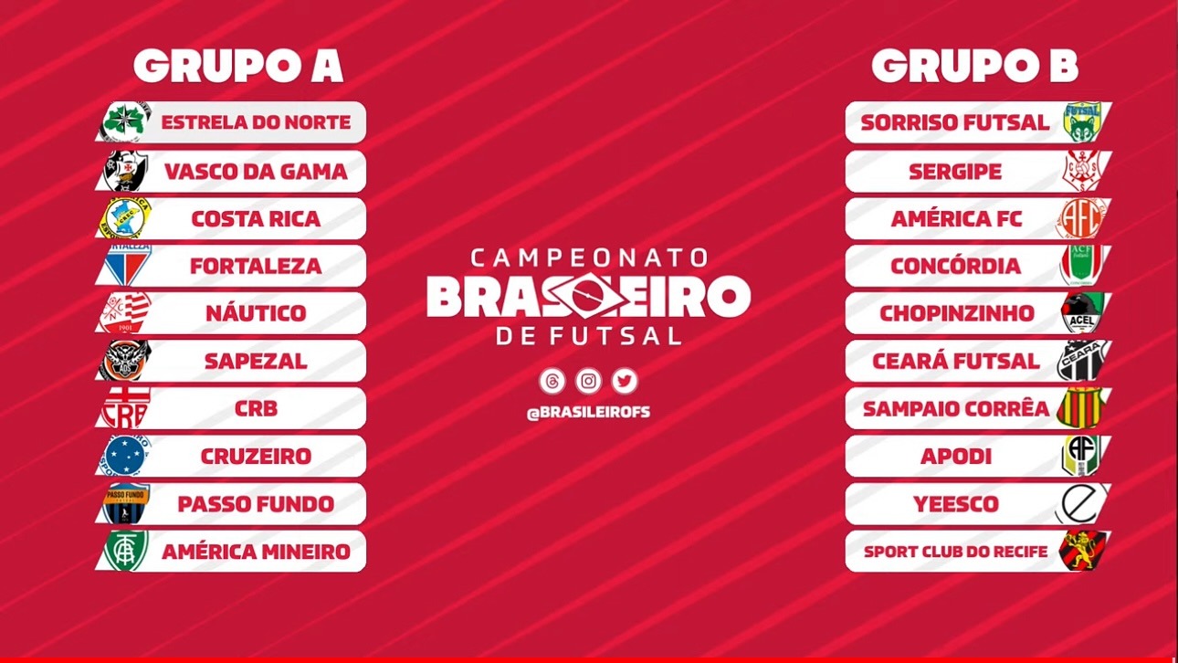 Futsal: Confira a tabela completa do Brasileiro; Vasco estreia no dia 16/05 contra o Fortaleza em casa
