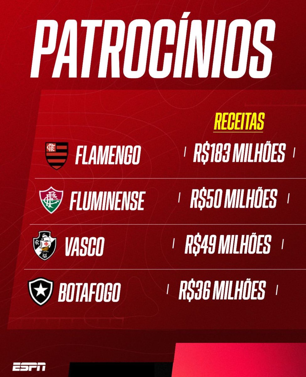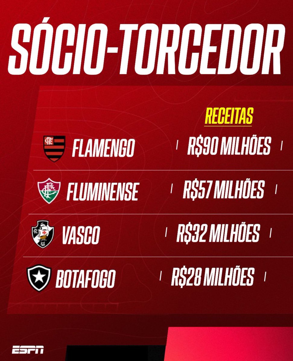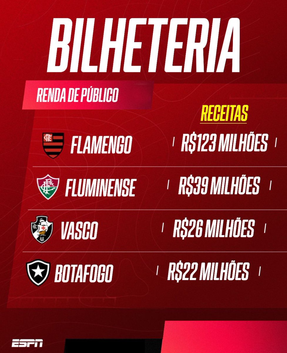 A @ESPNBrasil fez um comparativo de receitas dos 4 grandes clubes do Rio de Janeiro.