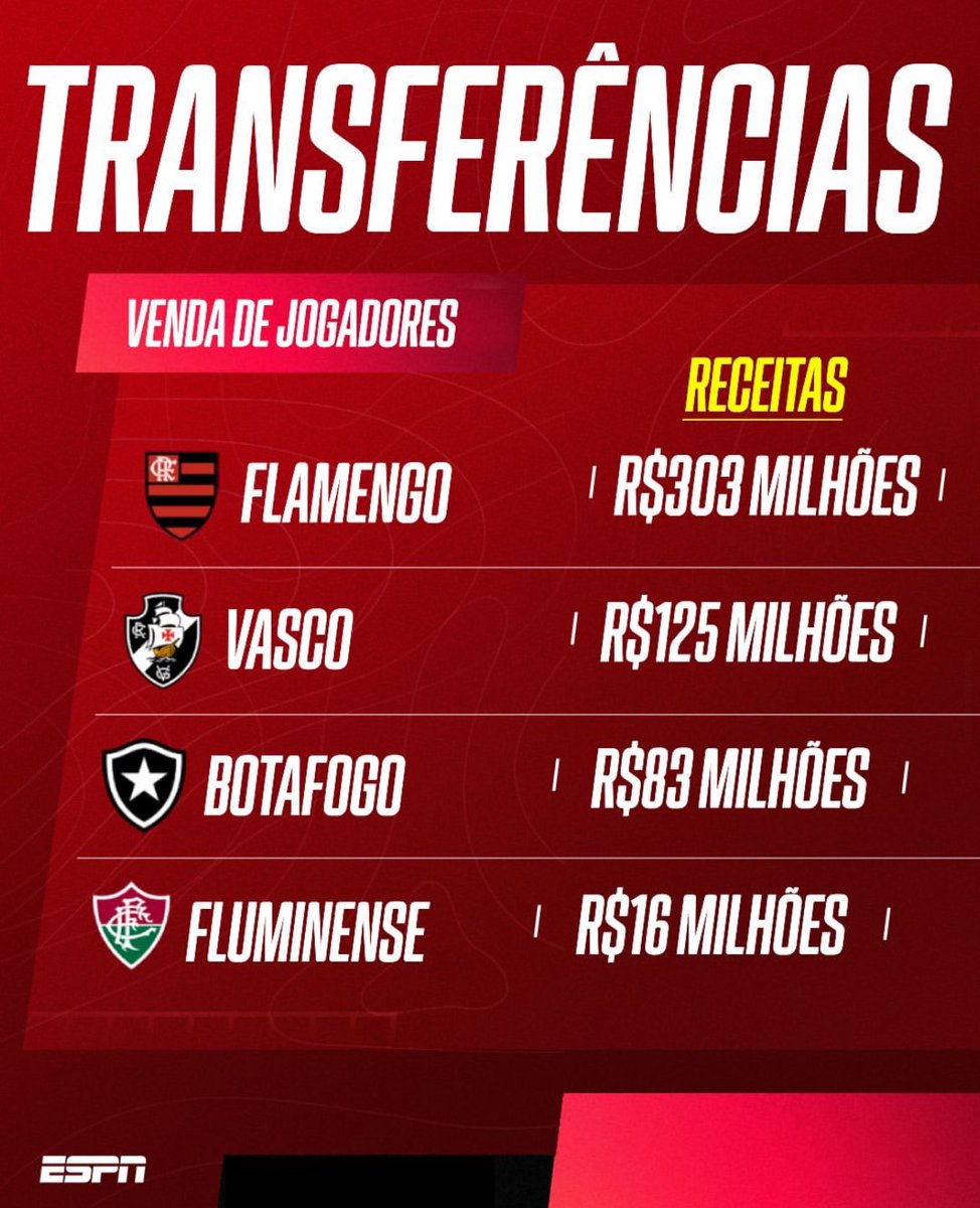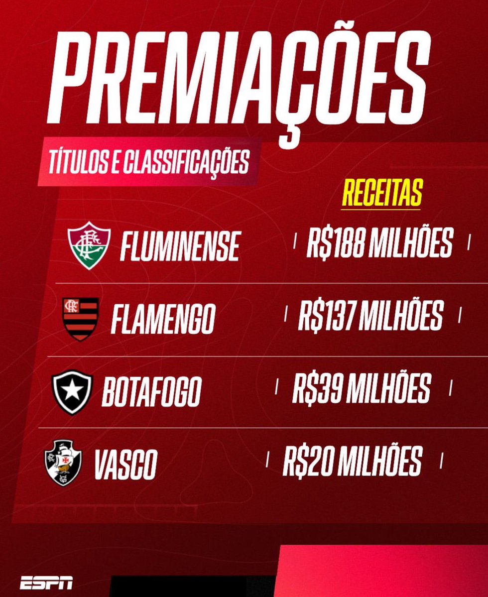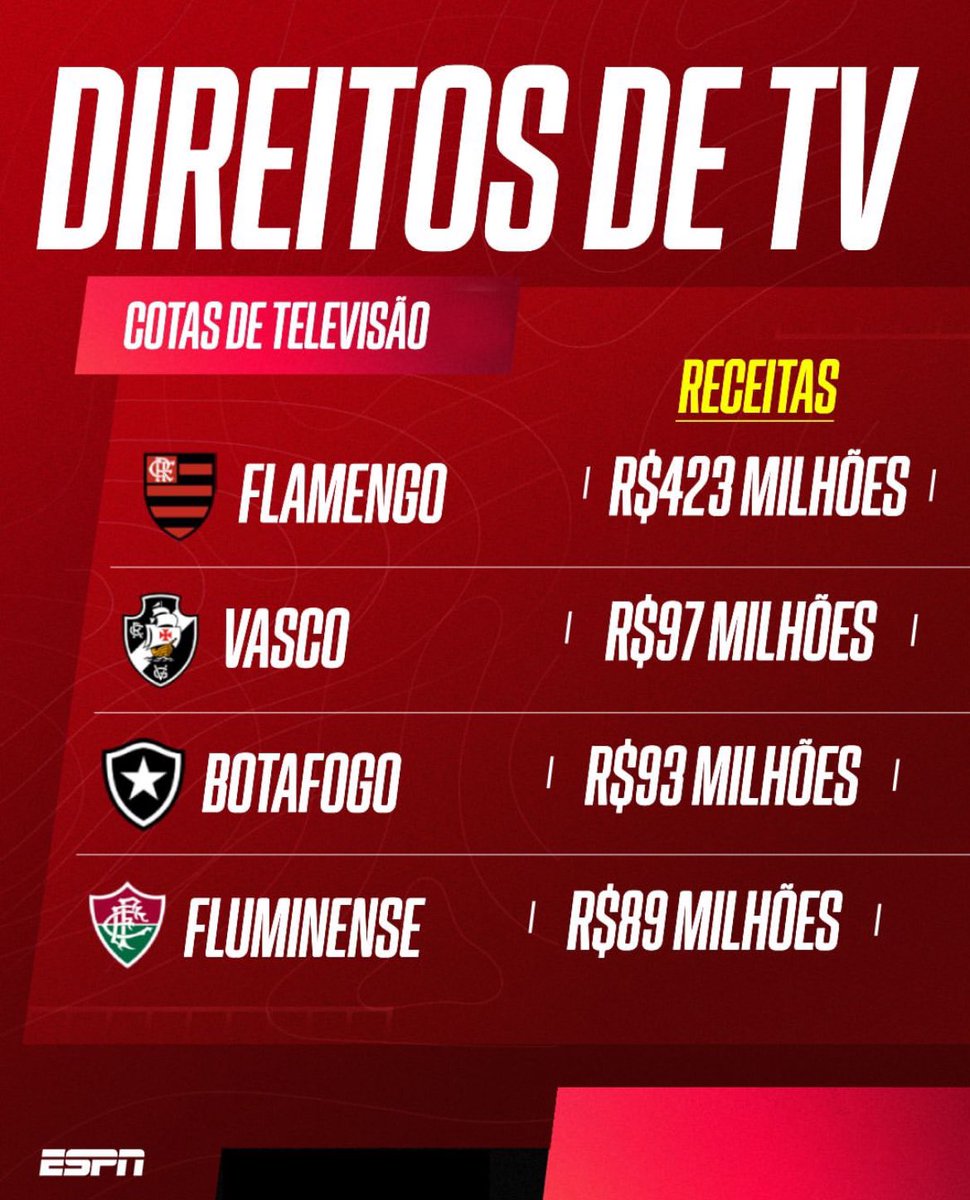 A @ESPNBrasil fez um comparativo de receitas dos 4 grandes clubes do Rio de Janeiro.