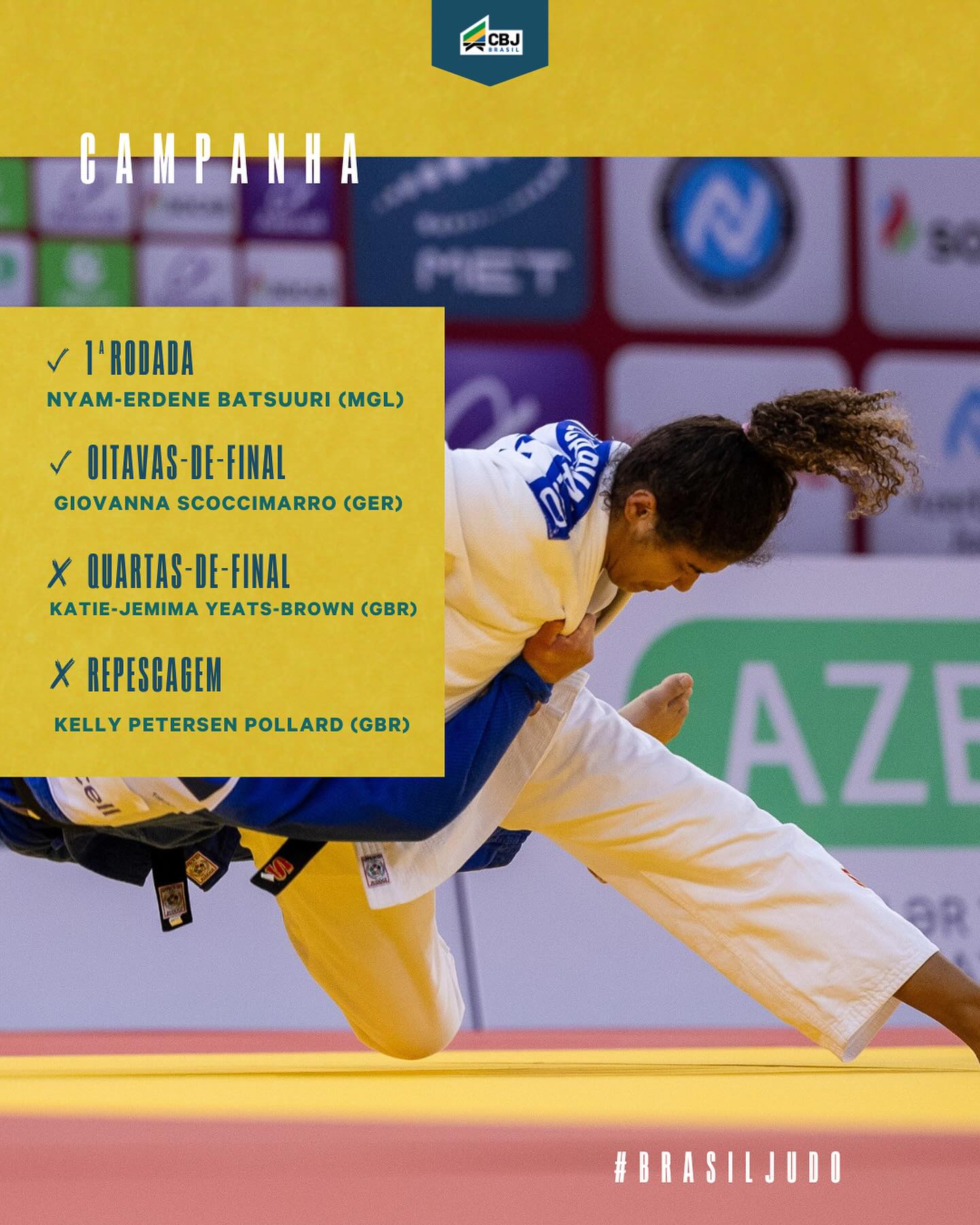Nossa guerreira @carvalholuanaa 70kg somou pontos importantes no Grand Slam de #judodushanbe 🇹🇯 com o 7º lugar após 4 lutas na competição! E o sonho por #paris2024 segue vivo! 🙌🏽🔥🥋🇧🇷