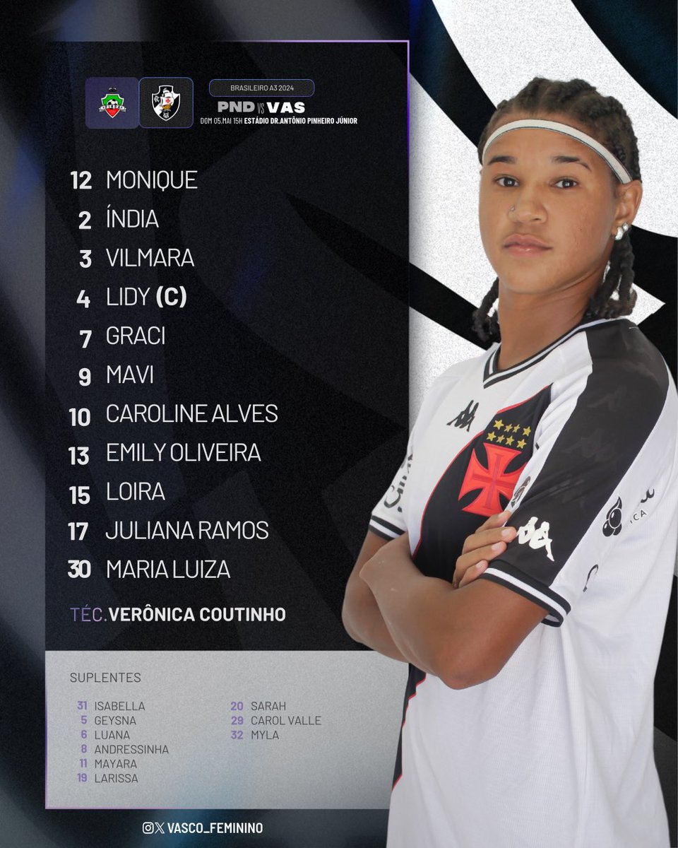Nosso time está escalado para o jogo de ida da segunda fase do Brasileiro A3. A bola rola às 15h para Vasco e Pinda, no Estádio Dr. Antônio Pinheiro Júnior. VAMOS! ✅📄💢 #MeninasDaColina