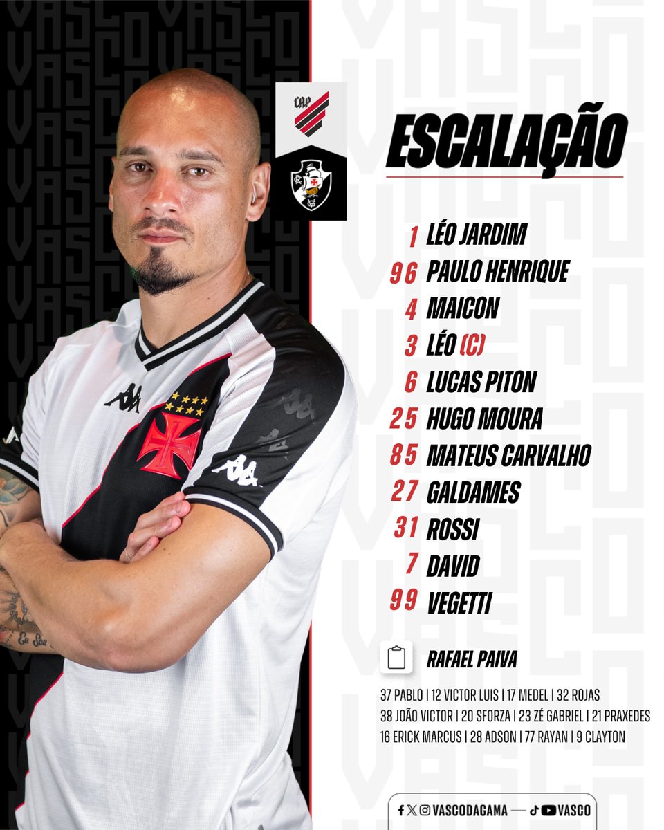 Confira a escalação do Vasco para o jogo contra o Athletico-PR; Rafael Paiva volta ao esquema de 2 zagueiros