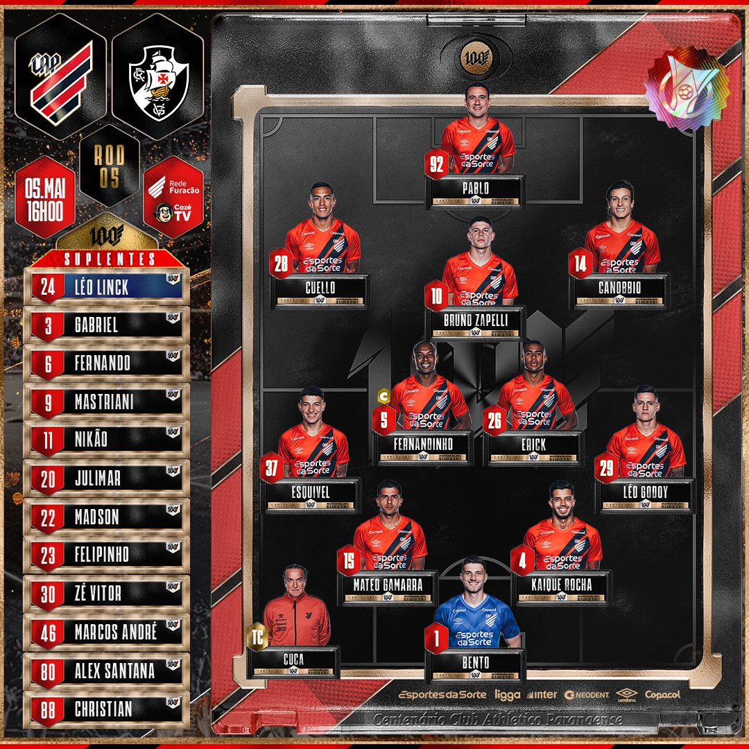 Veja a escalação do Athletico-PR para o jogo contra o Vasco; ex-vascaíno Madson é opção no banco