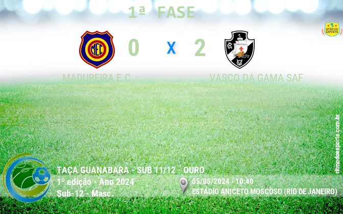03/05/24 - Pela Taça Guanabara, Vasco visita o Madureira neste domingo no Sub-11 e no Sub-12