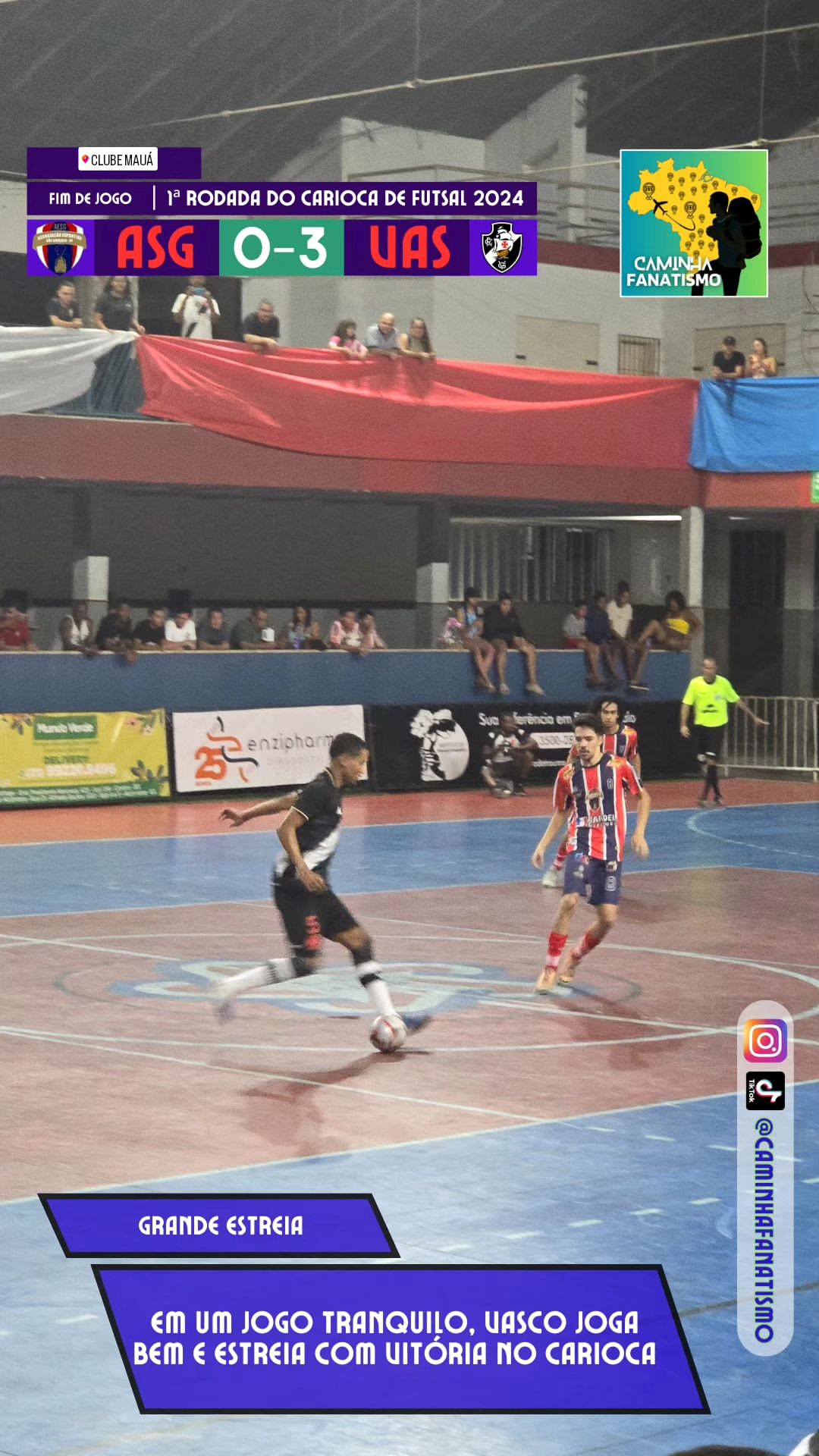 O Vasco estreou com vitória do Campeonato Carioca Adulto de Futsal. Atuando fora de casa, o Gigante da Colina derrotou a AE São Gonçalo por 3 a 0 na noite desta 6ª-feira. Os gols foram marcados por Danilo, Danrley e Bibi.