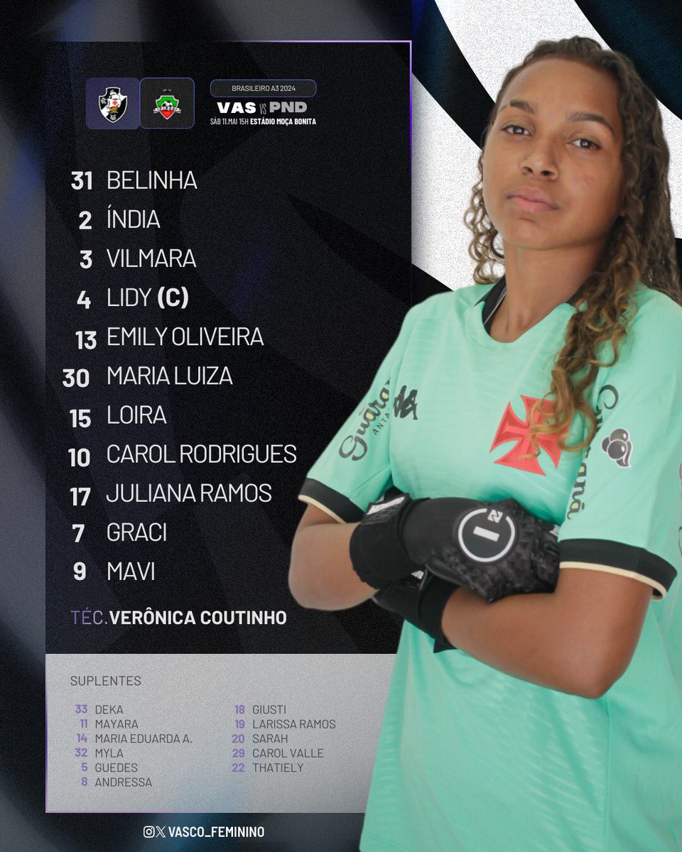 Nosso time está escalado para o jogo de volta da segunda fase do Brasileiro A3. A bola rola às 15h para Vasco e Pinda, no Estádio Nivaldo Pereira. VAMOS! ✅📄💢 #MeninasDaColina