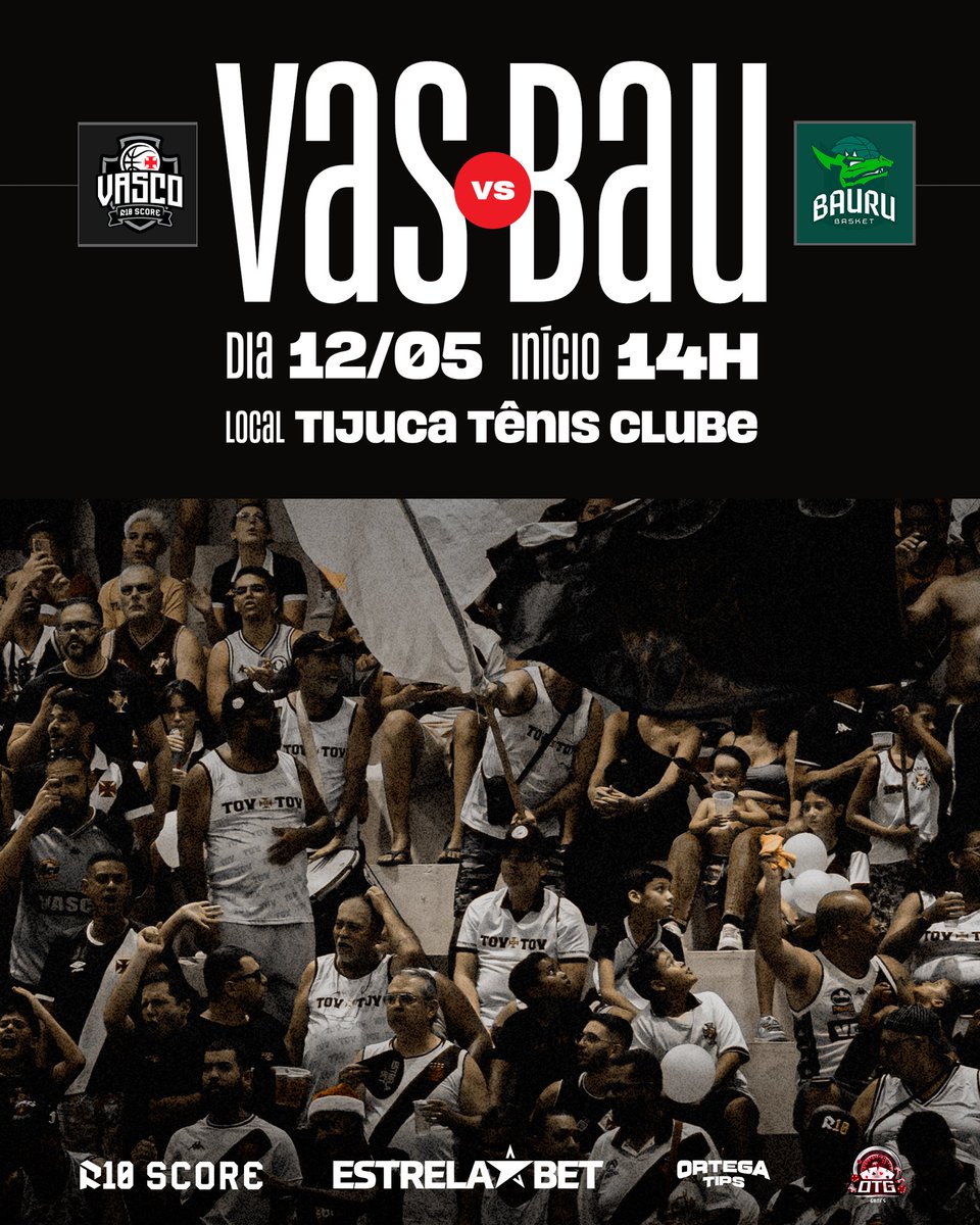 Às 14h, o R10 Score Vasco da Gama enfrenta o Bauru no Tijuca Tenis Clube no Jogo 4 das quartas no NBB Caixa!