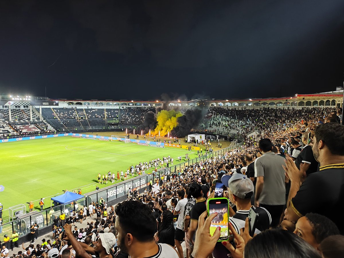Foguetório na entrada dos jogadores no gramado teve as cores da Betfair, nova patrocinadora do Vasco